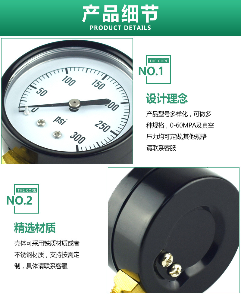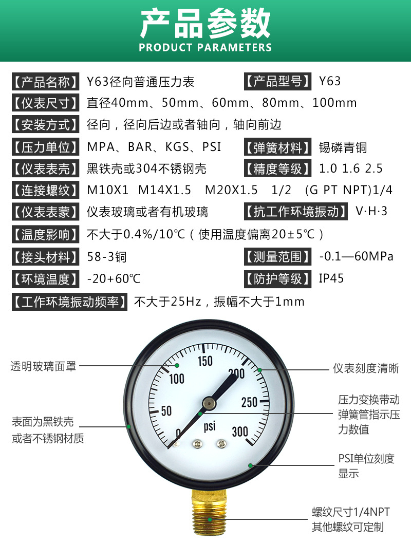 - Wide Compatibility: Versatile radial pressure gauge suitable for measuring oil pressure, gas pressure, liquid pressure, and water pressure in various systems.