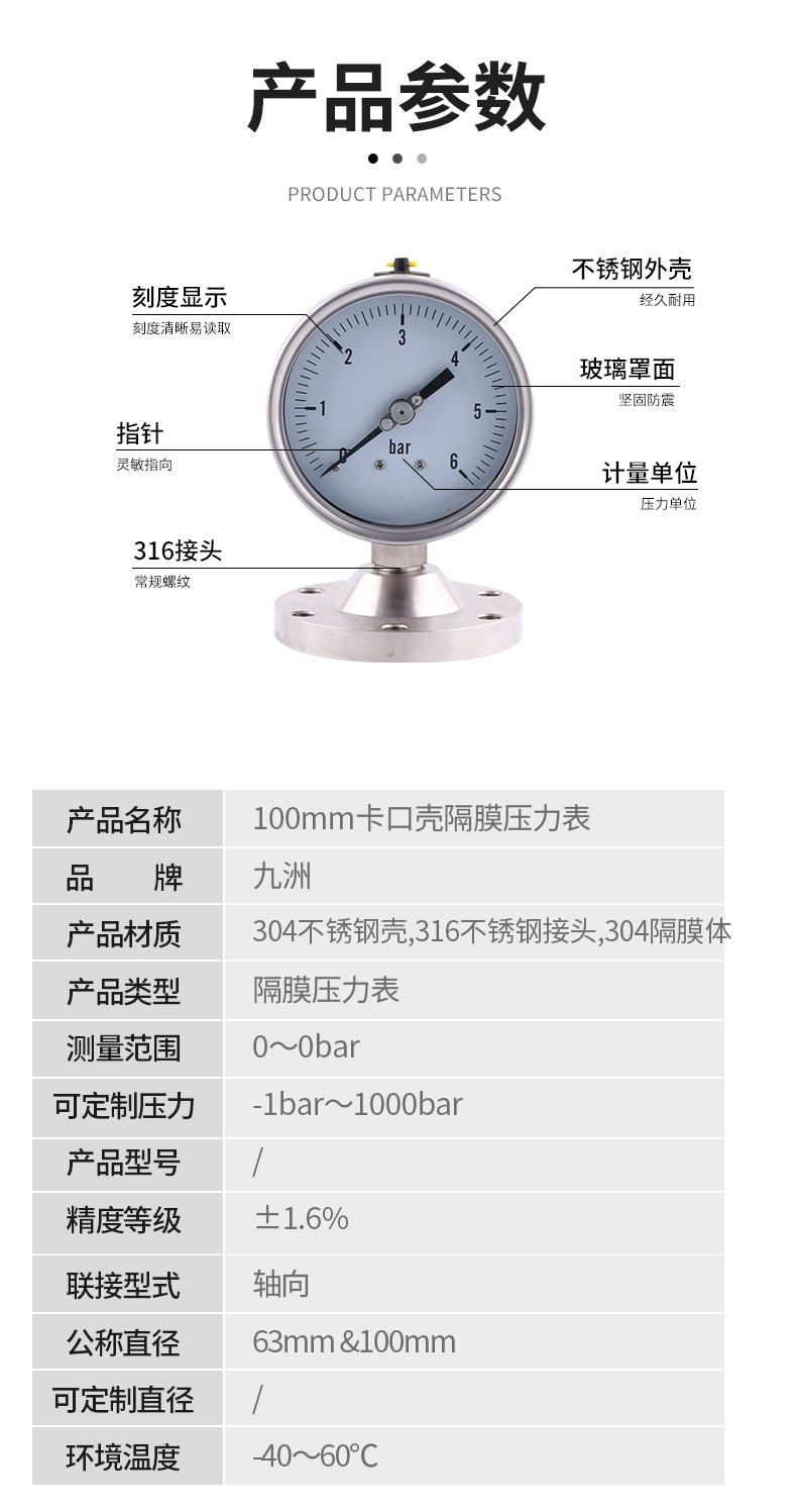 - What You Get: One 100mm diaphragm pressure gauge with stainless steel housing, ensuring reliable pressure measurement for your HVAC system. Note: Customizable pressure options are available to meet specific needs.