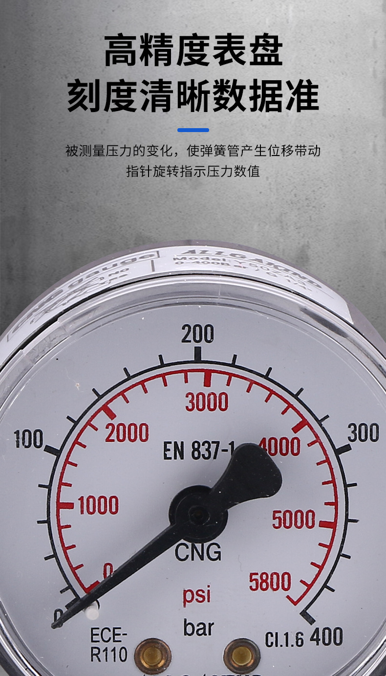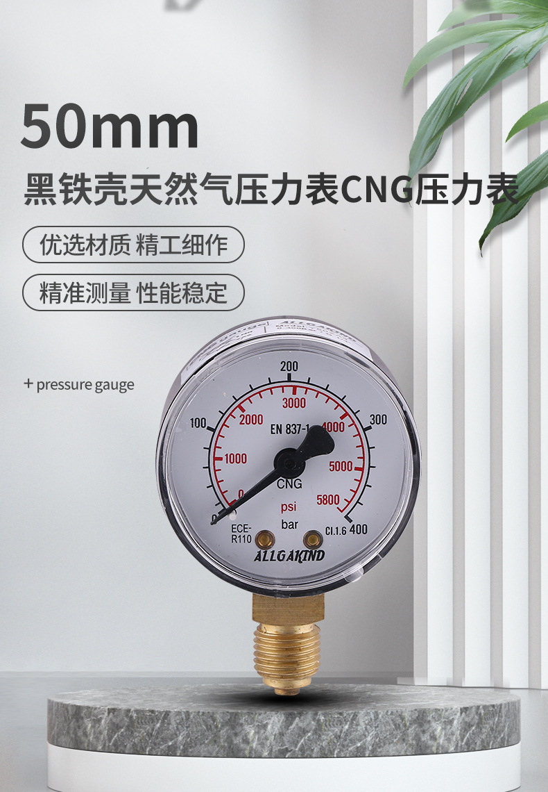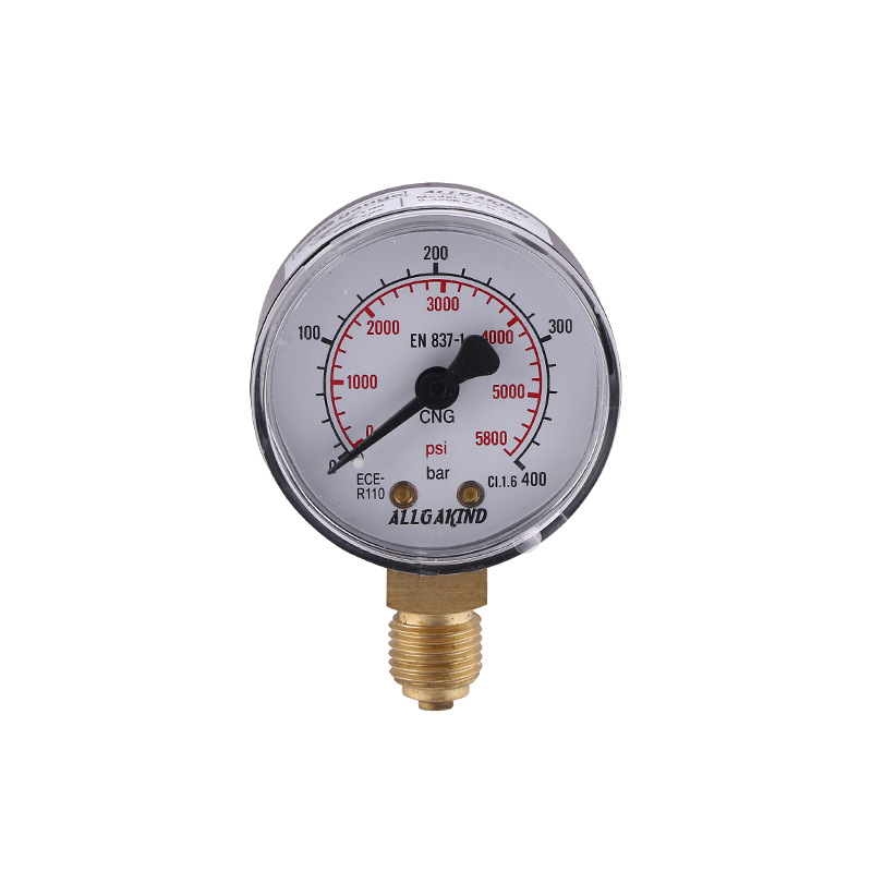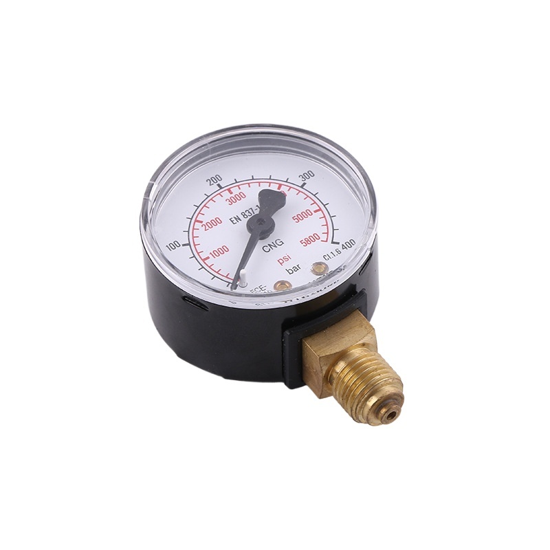Radial Pressure Gauge 50mm Black Iron Case Copper Joint for Natural Gas CNG ECE-R110 EN 837-1 0-400bar/psi CI.1.6 400