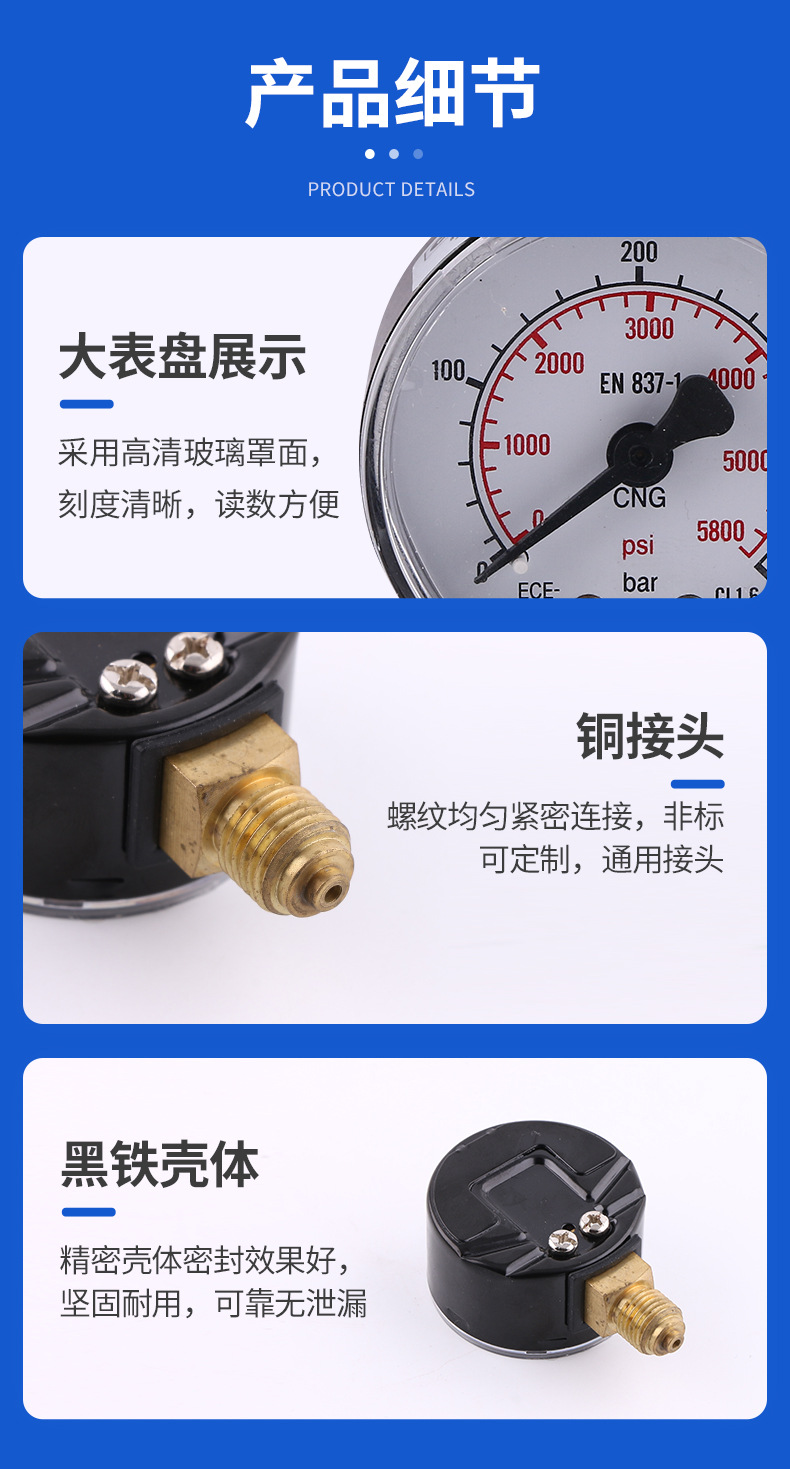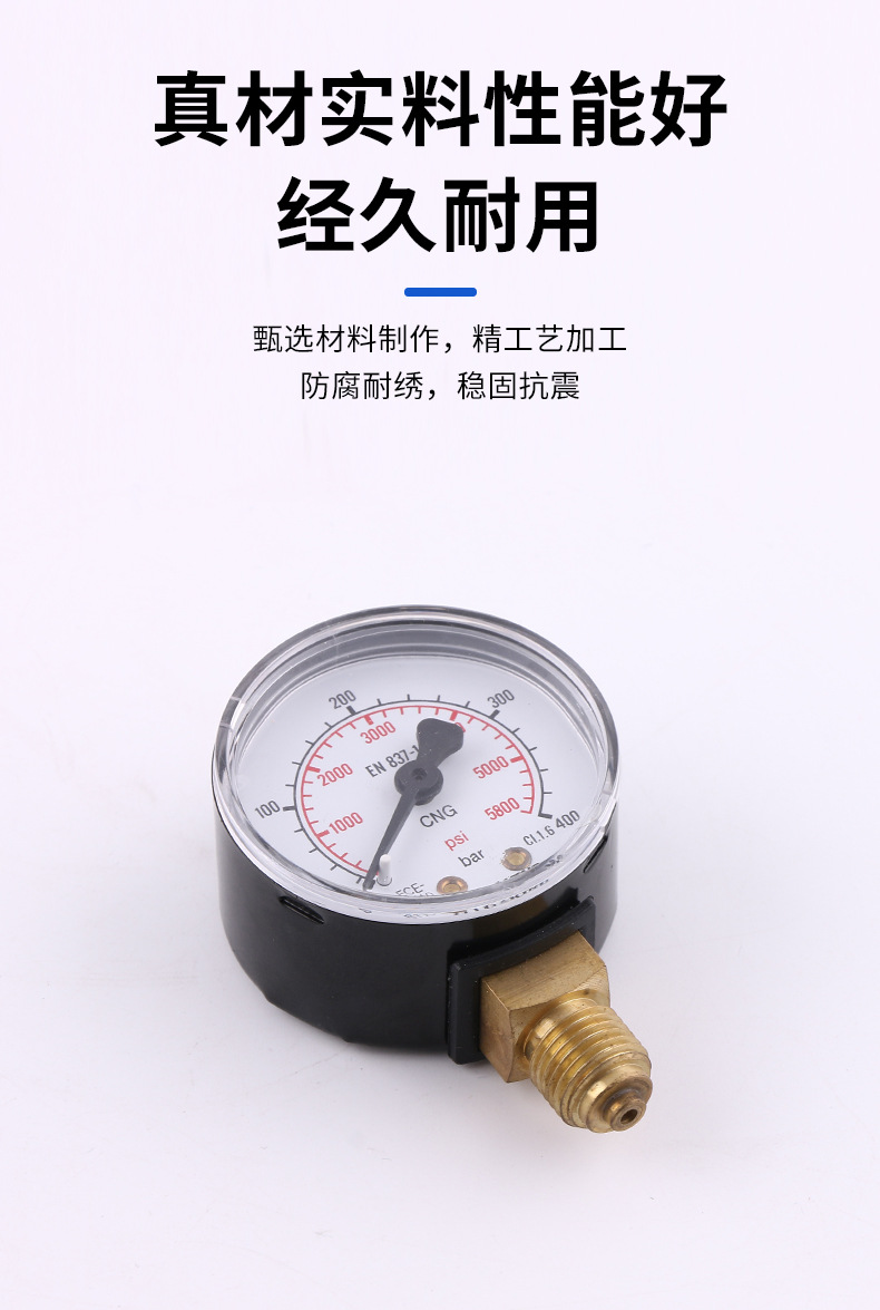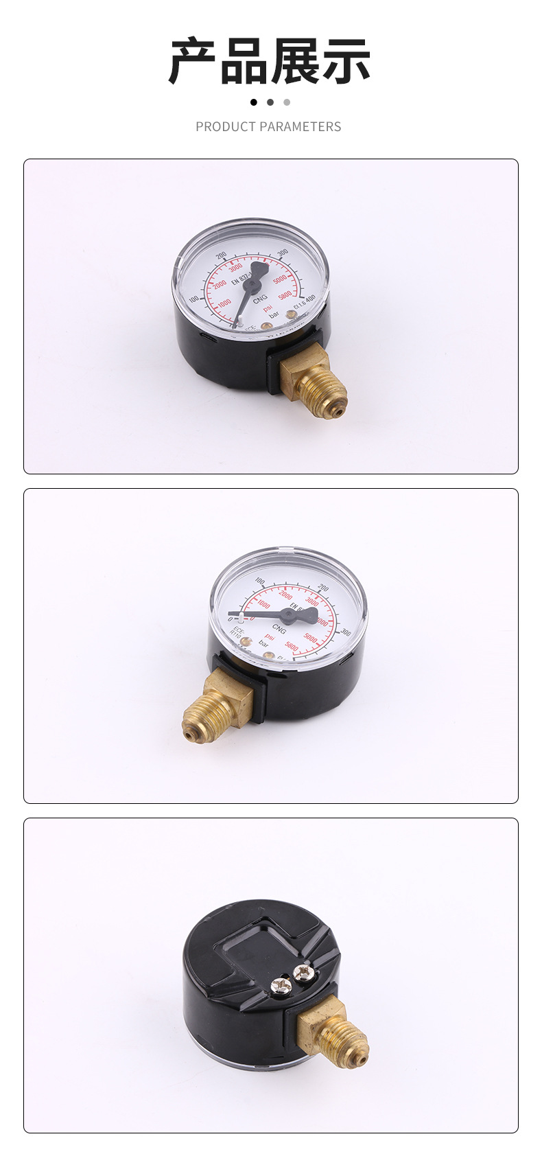 Radial Pressure Gauge 50mm Black Iron Case Copper Joint for Natural Gas CNG ECE-R110 EN 837-1 0-400bar/psi CI.1.6 400