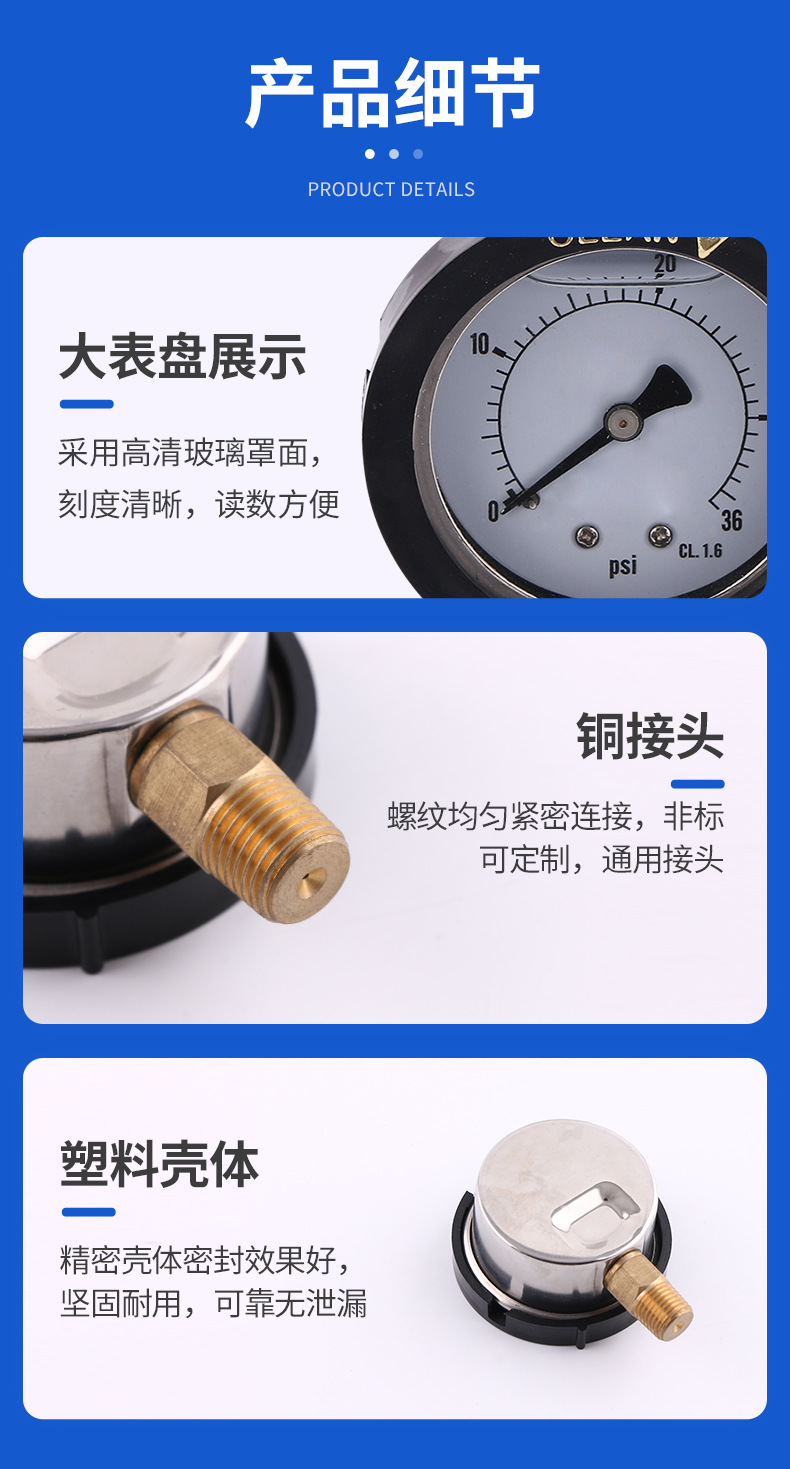 Hongqi Y-60 Pressure Gauge Water Pressure Vacuum Negative Pressure Meter for HVAC Firefighting Tire Pressure