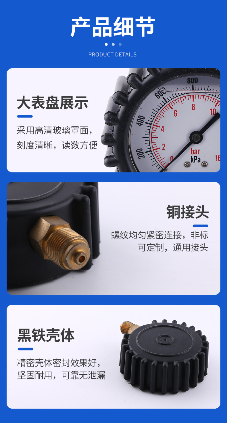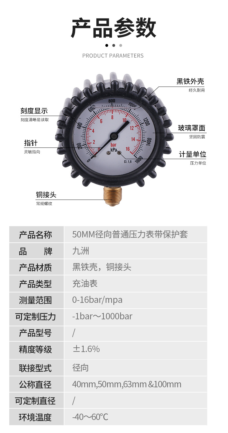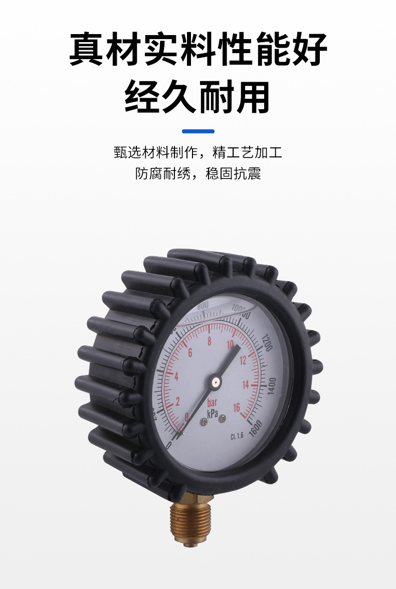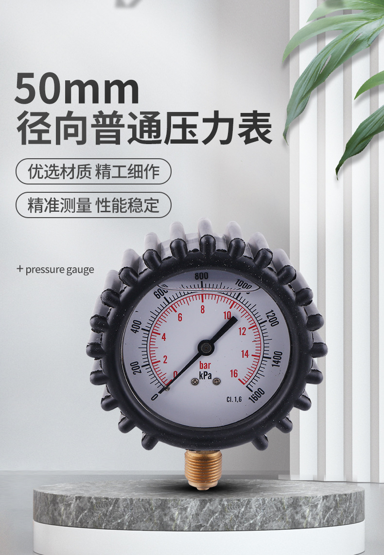 Radial Pressure Gauge with Protective Sleeve (50mm Diameter, 0-16 bar/MPa, Class 1.6) for HVAC Systems