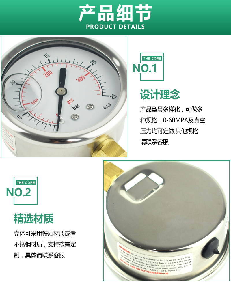 - Versatile Application: Ideal for a wide range of uses, ensuring precise pressure monitoring in hydraulic systems, pneumatic systems, and water treatment facilities.