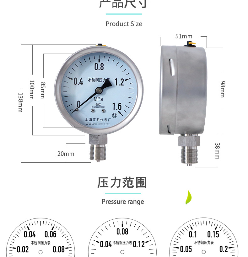 - What You Get: One Shanghai Jiangyue Y100BF Weika type stainless steel pressure gauge, guaranteed safe and reliable, perfect for industrial and HVAC use.