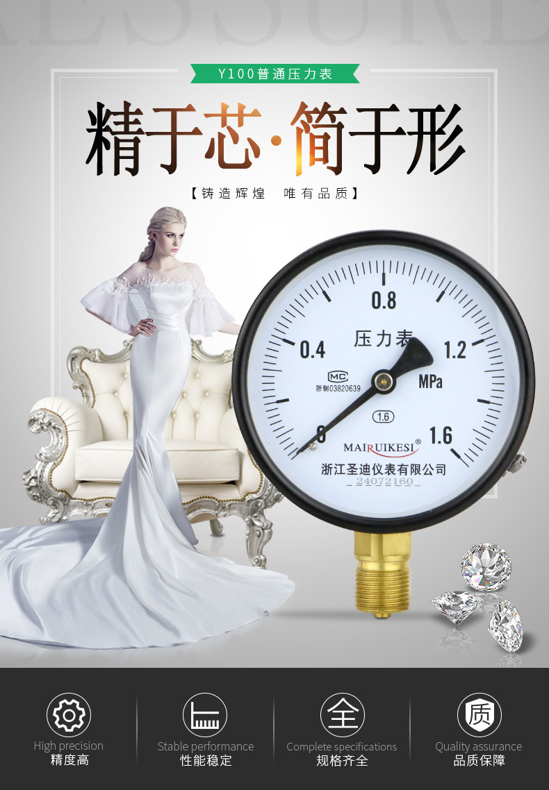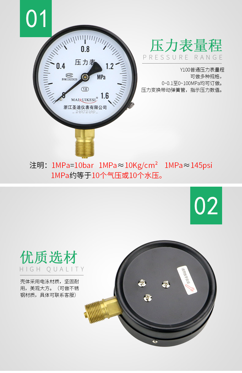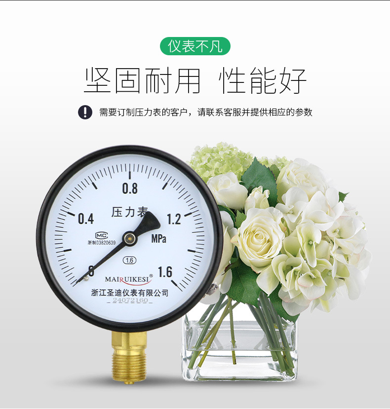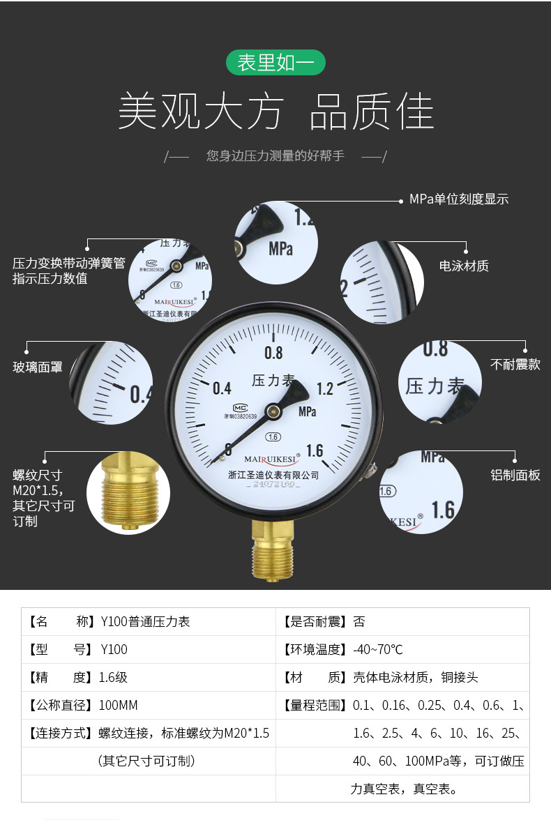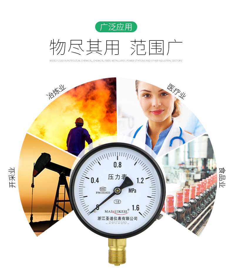 - Key Specs & Performance: Features a 100mm nominal diameter and 1.6 accuracy class for precise pressure readings from -0.1 to 1.6 MPa.