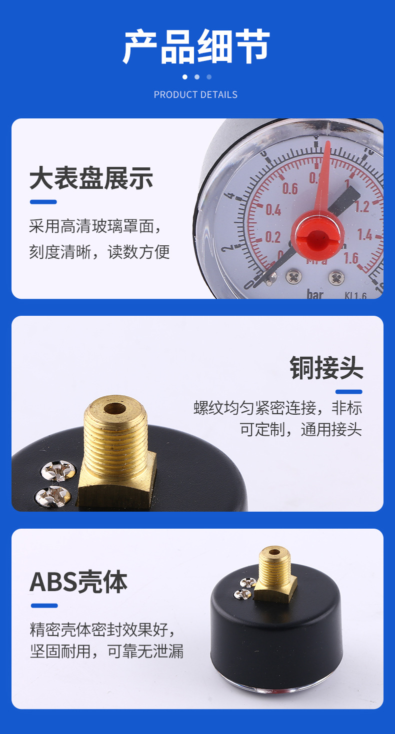 - Key Specs & Performance: Measures pressure from 0-1.6 Mpa (0-16 bar) with a KI 1.6 precision level, providing accurate and reliable readings for optimal system operation. Includes an adjustable red pointer for easy threshold marking.