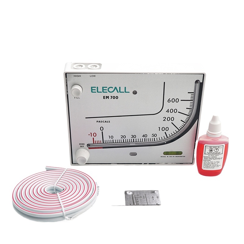 Red Oil Differential Pressure Gauge EM700 Manometer (-10 to 600 Pa) for HVAC Systems