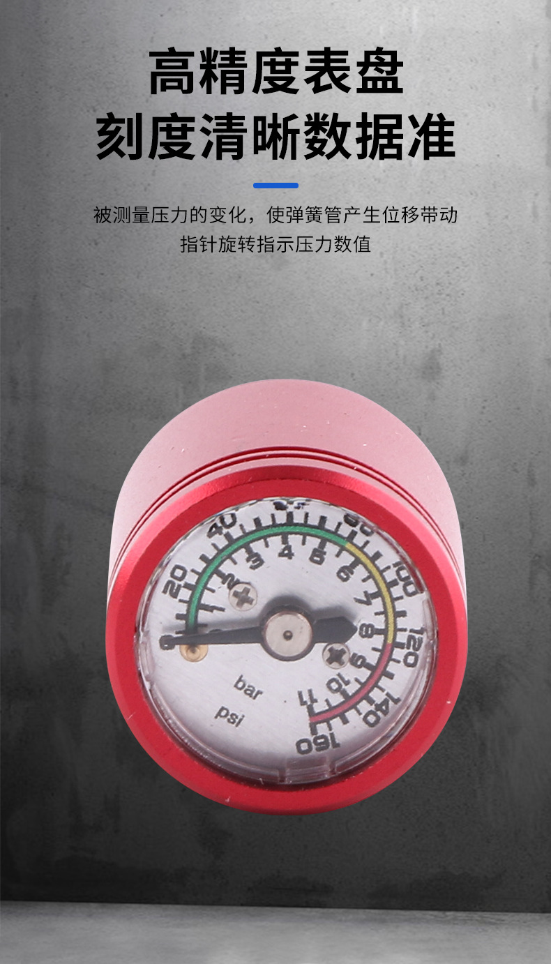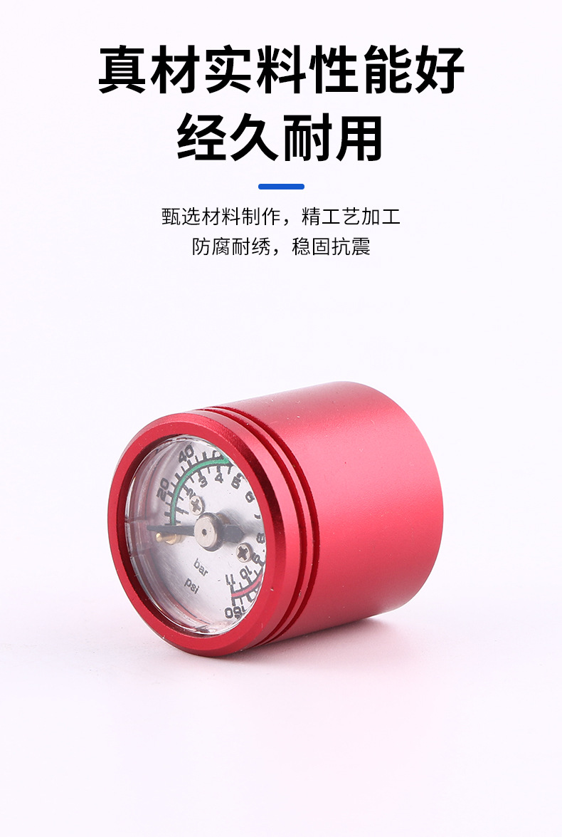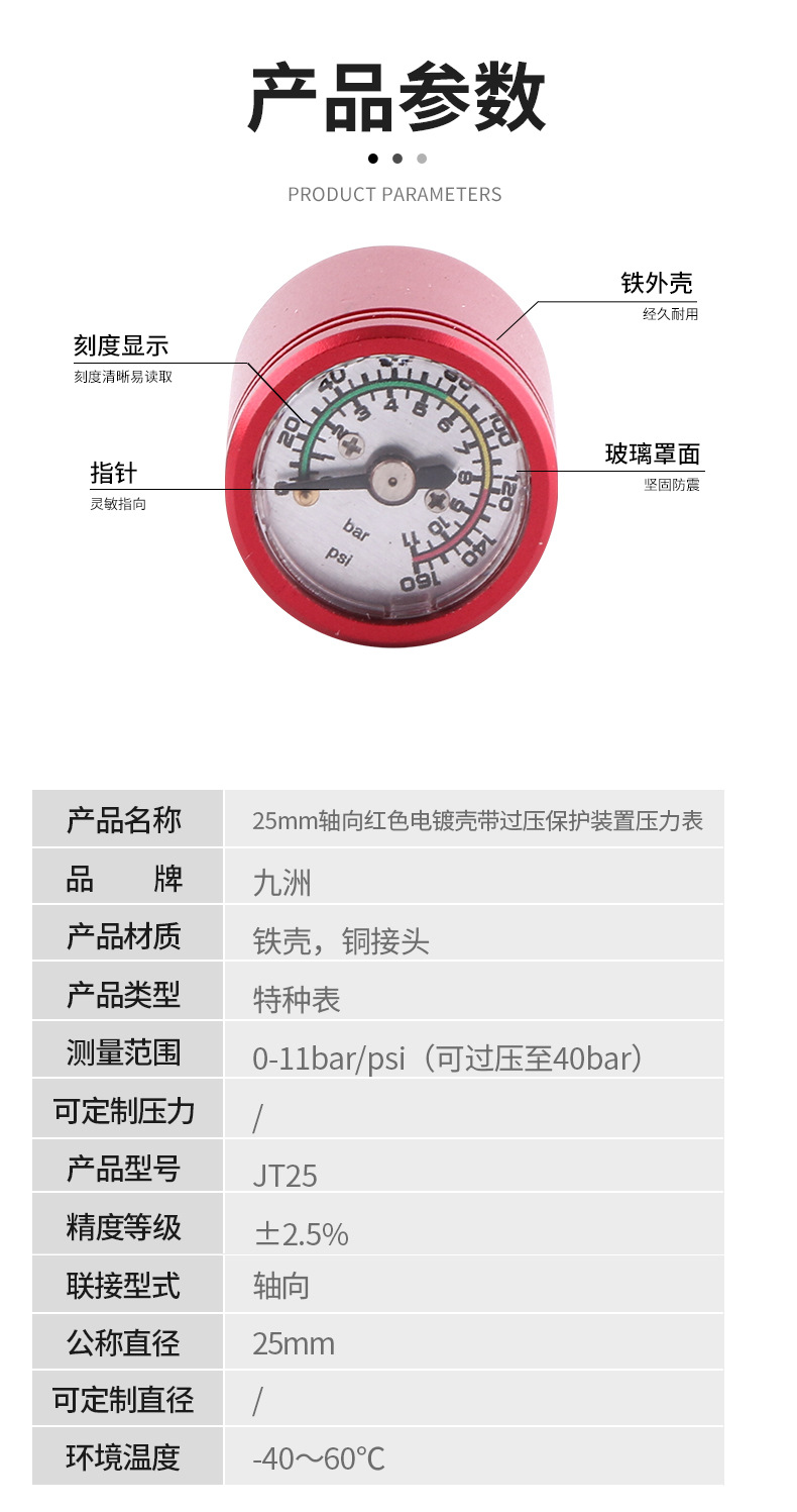Red Plated 25mm Axial Pressure Gauge with Overpressure Protection (0-11bar/psi, 40bar Overpressure) for HVAC Systems