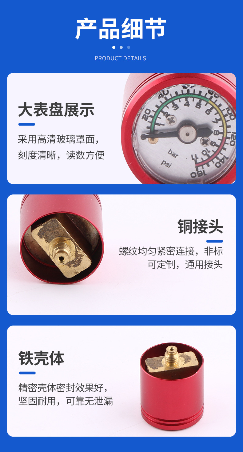 Argon Gas Pressure Regulator, Dual Gauge Single Stage, US Standard, 0-25 MPa, 30 Flow Rate