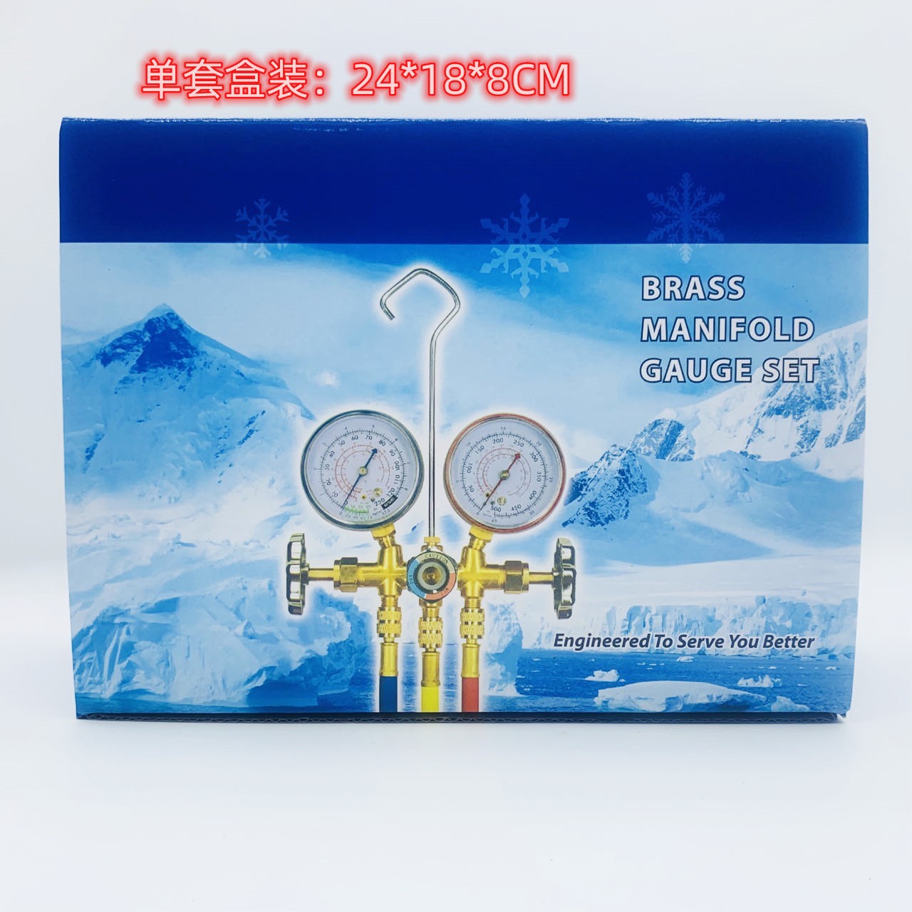 Refrigerant Manifold Gauge Set (R22/R134a/R12/R404a) with Brass Valve Body and Hoses for AC/Automotive Maintenance – hvacDTCSkip to content