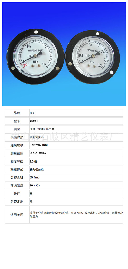 - Key Specs & Performance: Features a precise measuring range of -0.1~1.5MPA and a 2.5 accuracy level, providing accurate readings for various refrigerants.