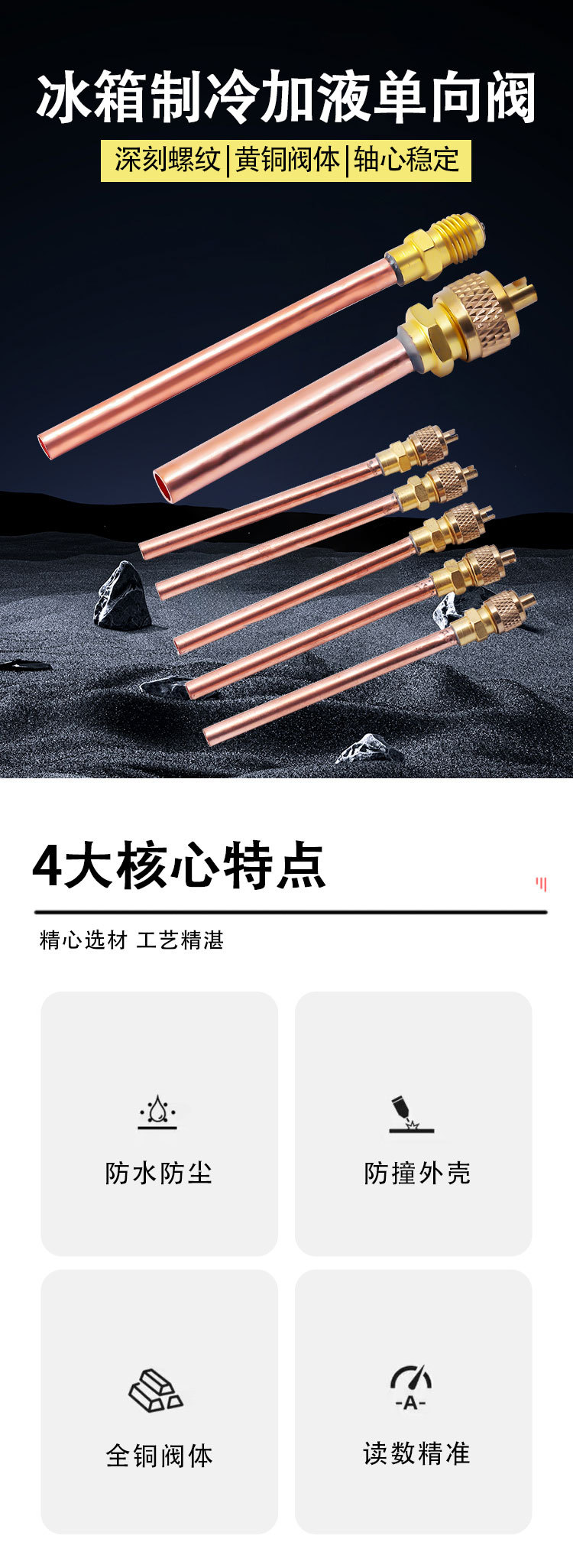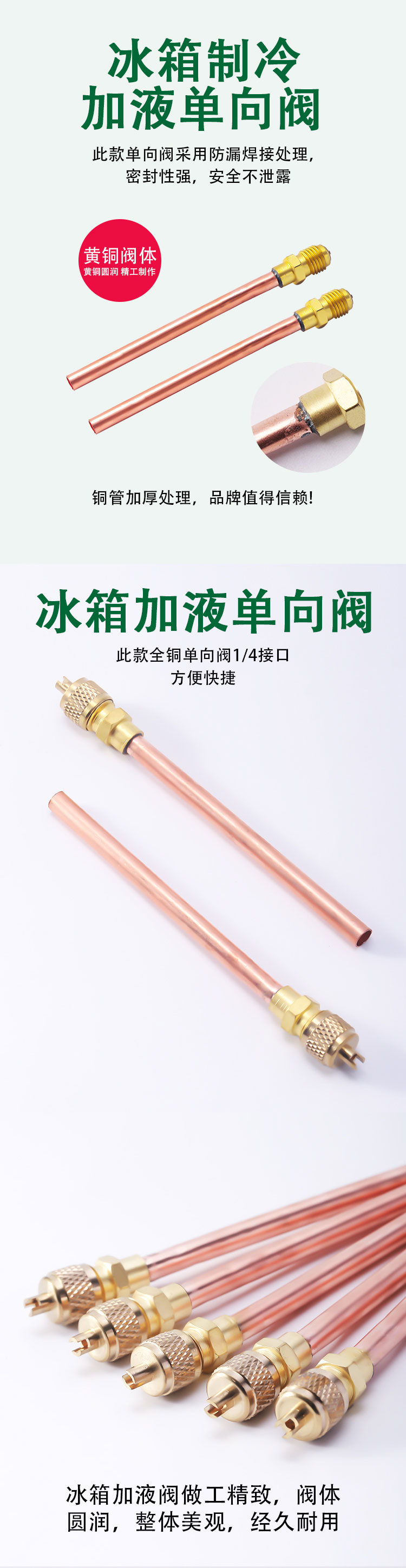 Refrigerator Charging One-Way Check Valve (Pure Copper, Leak-Proof) for Refrigerators, Freezers, AC Refrigeration Refilling