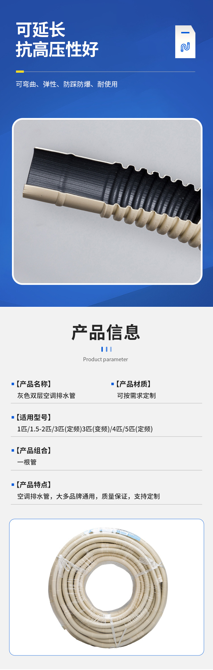 - What You Get: One roll of durable gray double-layer AC drain hose, offering a reliable and long-term solution for your air conditioning drainage needs with enhanced weather resistance.