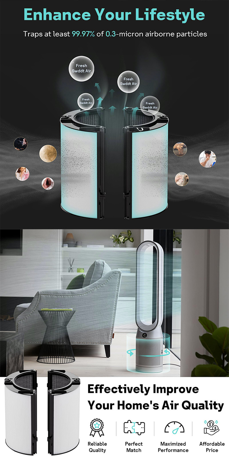 - Wide Compatibility: Designed to perfectly fit Dyson PH01, HP07, HP10, HP06, and TP06 air purifiers, ensuring a seamless filter replacement experience.