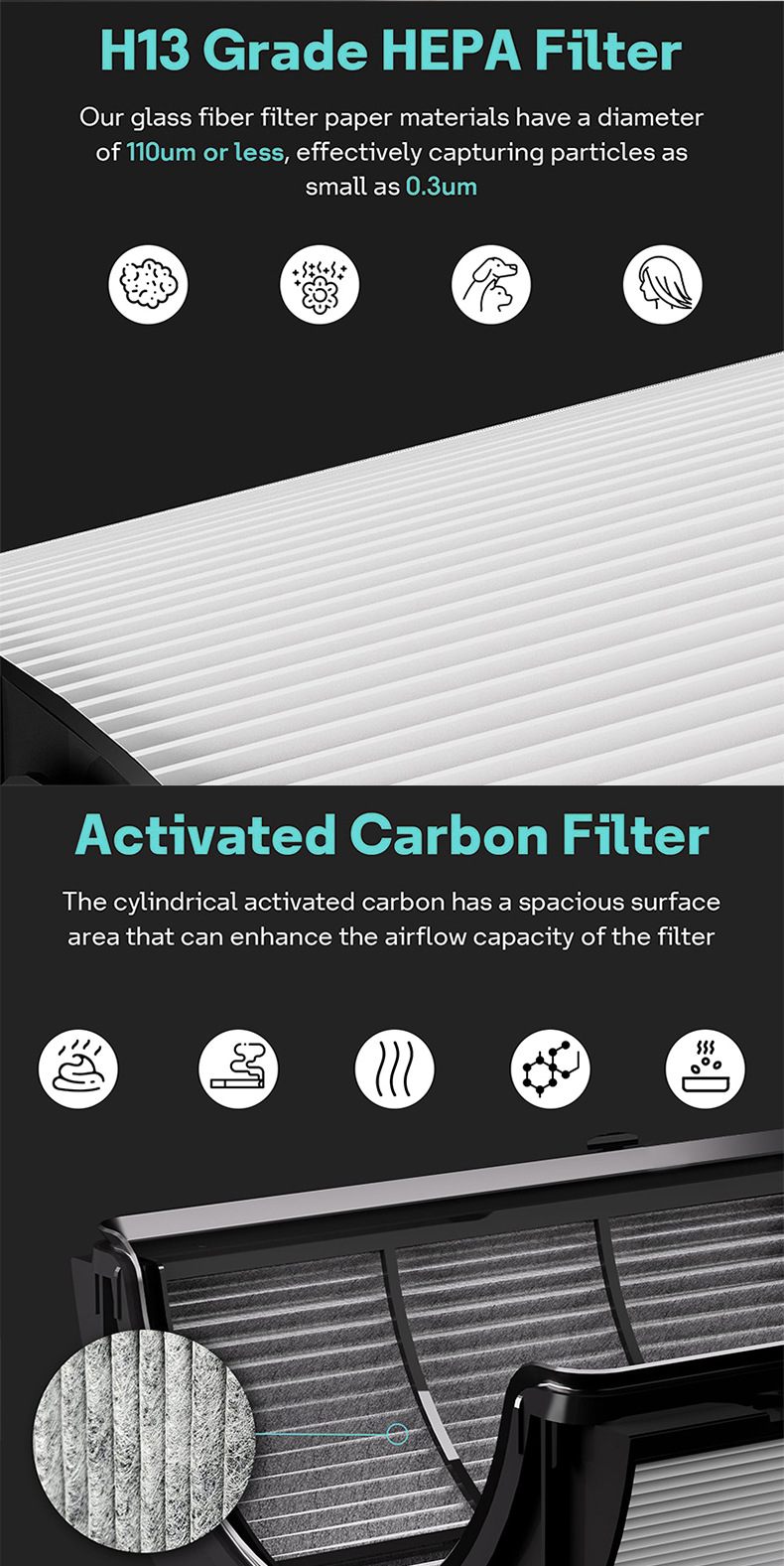 - Quality Material: Features a 2-in-1 design with advanced HEPA media and activated carbon layers, providing robust air purification.