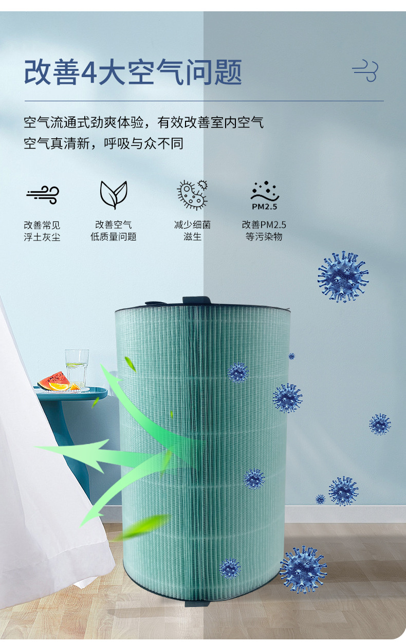 - Superior Purification: Engineered to efficiently remove formaldehyde, PM2.5, odors, pet dander, pollen, and other airborne contaminants, significantly improving indoor air quality.