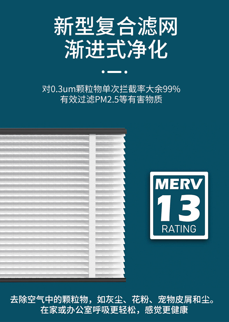 - Premium MERV13 Filtration: Utilizes high-quality MERV13 media, effectively capturing airborne particles such as dust, pollen, pet dander, and mold spores for cleaner indoor air.