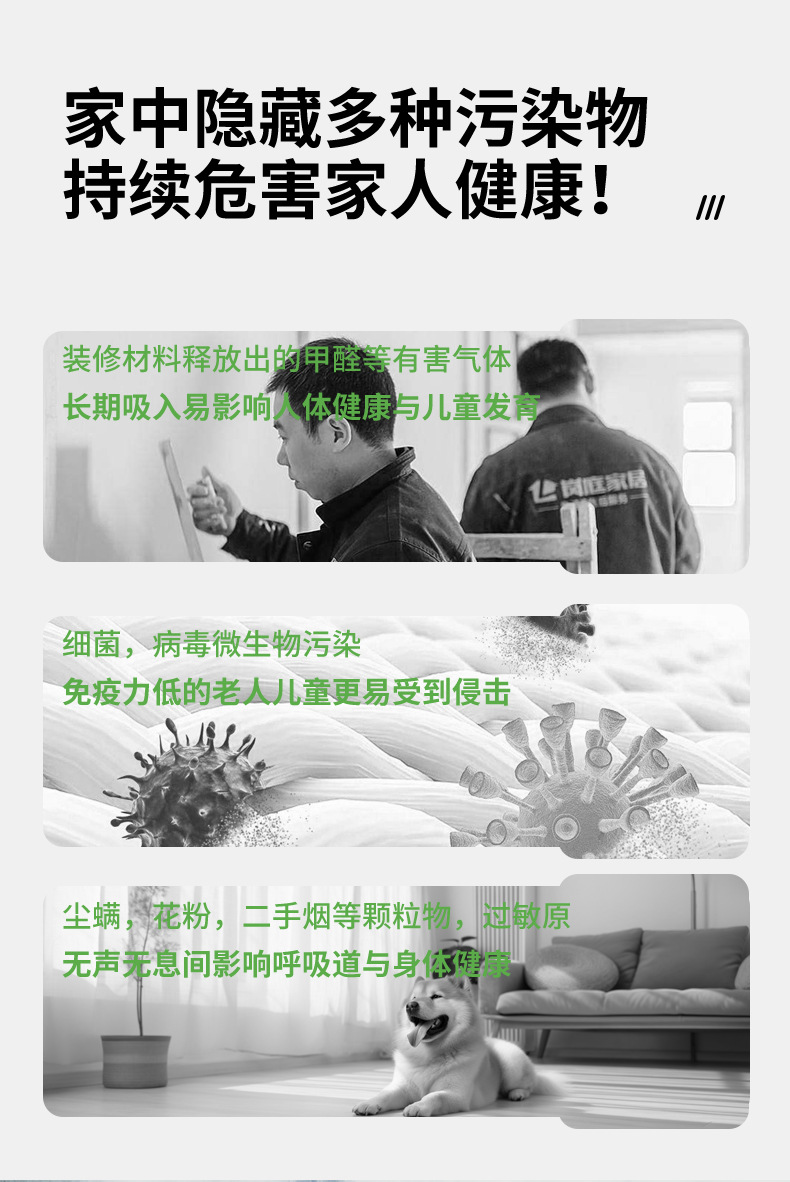 - Enhanced Air Quality: Effectively removes formaldehyde, haze particles, peculiar odors, and fine particulate matter like PM2.5, significantly improving indoor air quality.