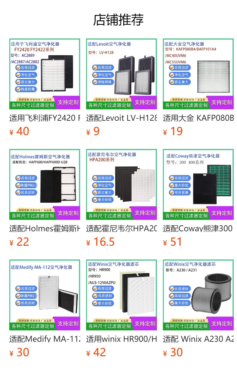 Assorted Air Purifier Filter Replacements (HEPA, Activated Carbon, and Composite Filters) for various Air Purifiers