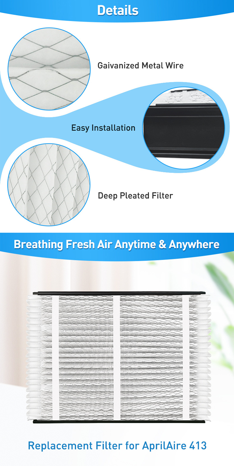 - Wide Compatibility: Designed as a direct replacement air purifier filter for AprilAire 413 models.