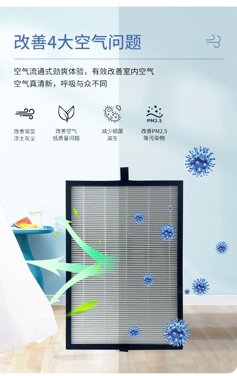 - Enhanced Filtration Performance: Effectively removes formaldehyde and haze, significantly improving indoor air quality and ensuring a healthier living environment for you and your family.