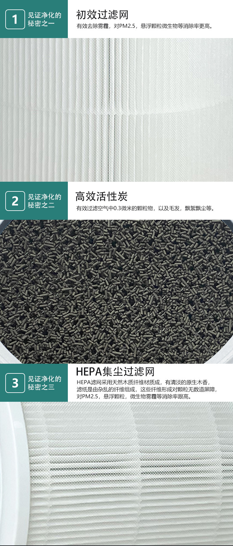 - Enhanced Air Purification: This composite filter combines HEPA for particulate matter, activated carbon for odors, and specifically targets formaldehyde, smog particles, and PM2.5, ensuring fresher indoor air.