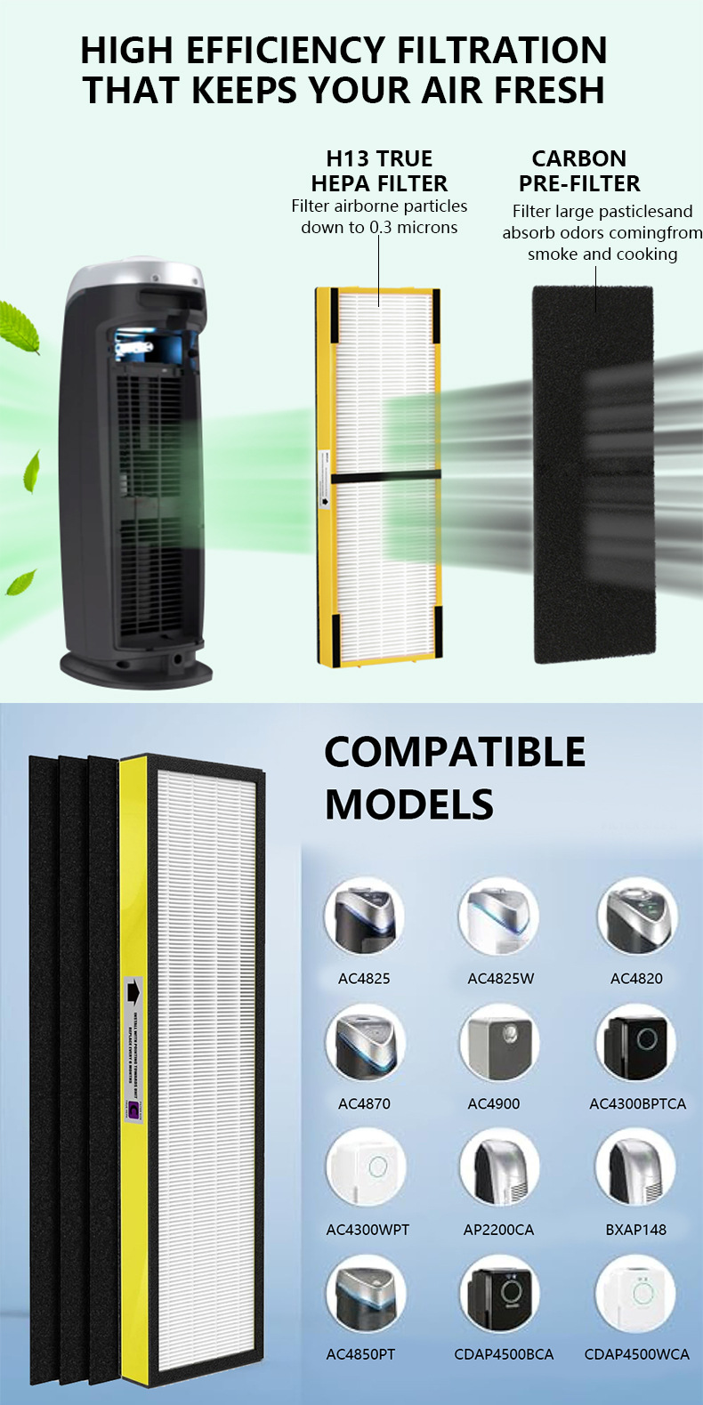 - Wide Compatibility: Designed as a perfect replacement filter for Germ Guardian FLT4825, fitting models AC4825, AC4300, AC4850, AC4800, and AC4820 air purifiers.