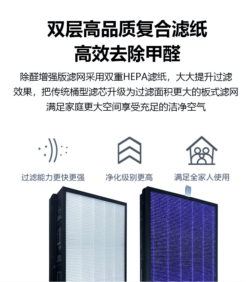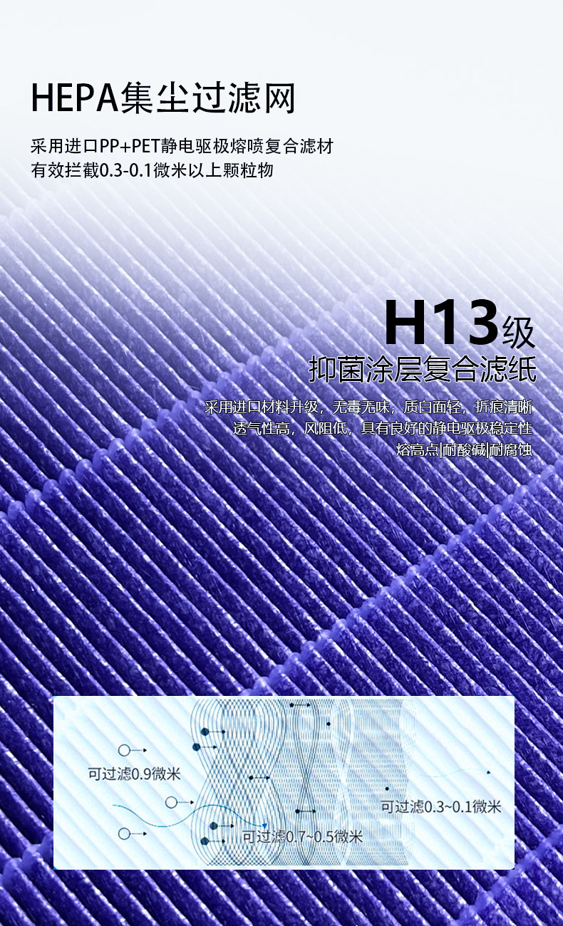 - Premium HEPA Material: Crafted with high-efficiency HEPA filtration material, effectively capturing dust, formaldehyde, haze, and PM2.5 particles for cleaner air quality.
