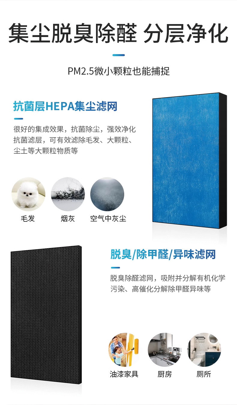 - Premium Filtration Performance: Features advanced HEPA filtration technology to effectively capture airborne particles including PM2.5, smoke, and odors, providing cleaner and fresher air.