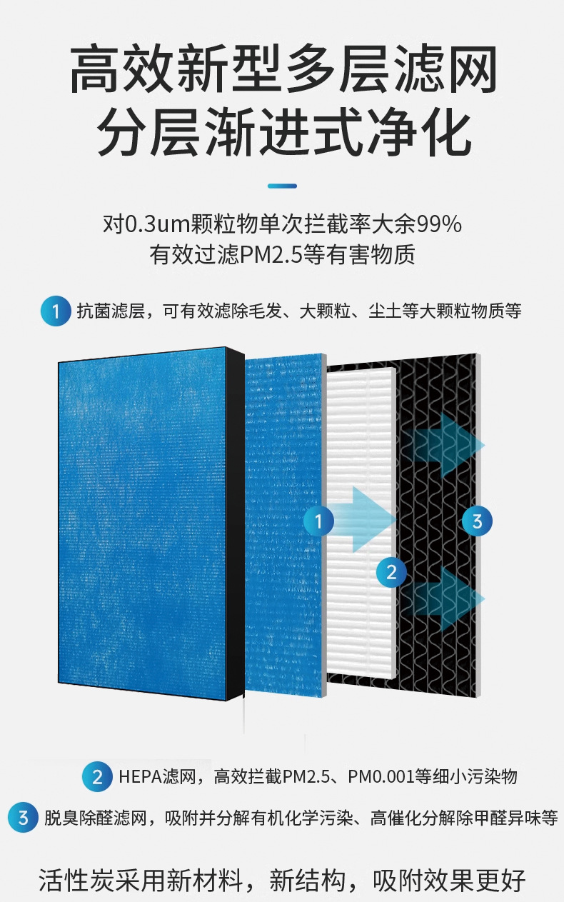 Antibacterial Composite Activated Carbon Filter Replacement for Xiaomi Air Purifier (2C/2H/3C/4Pro)
