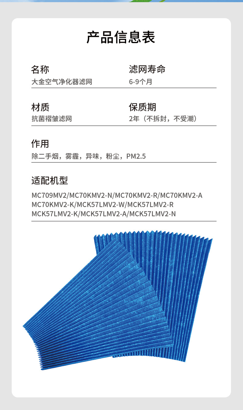 - Wide Compatibility: Designed for Daikin air purifier models MC70KMV2, ensuring a perfect fit and seamless operation.