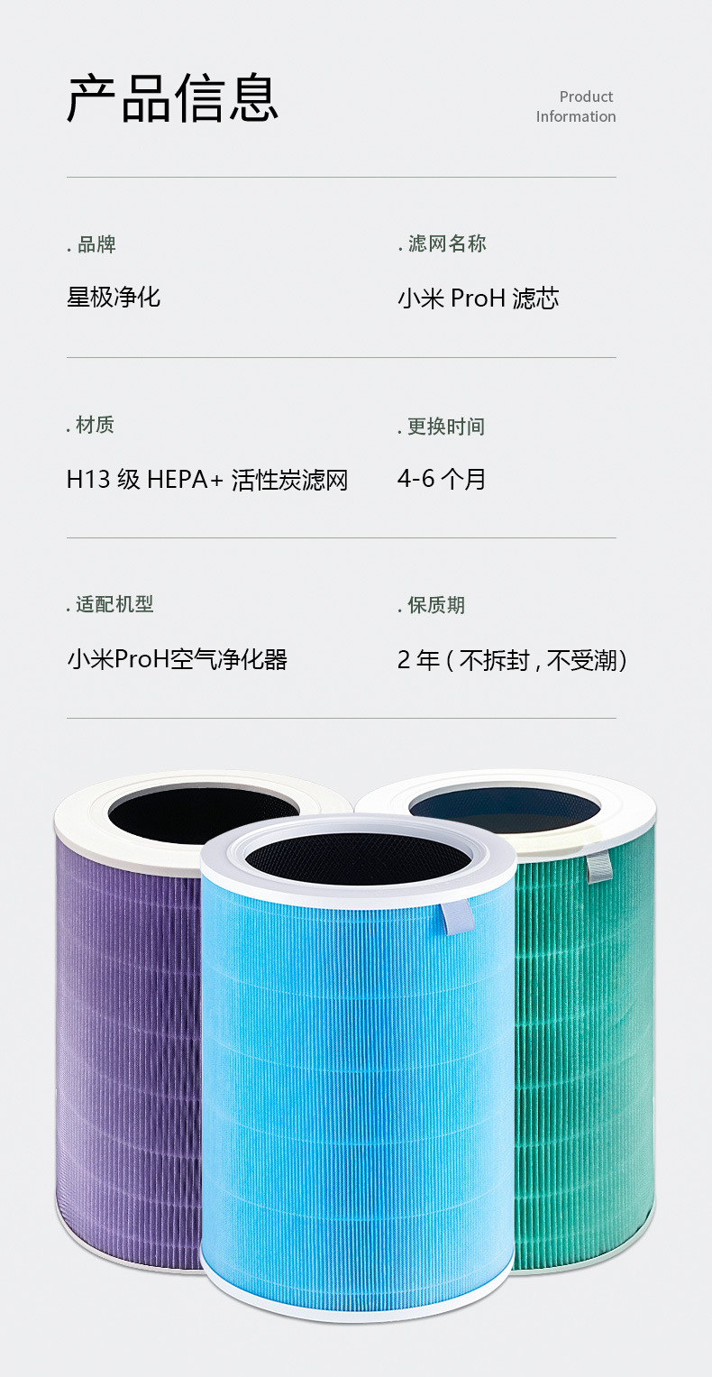 - Wide Compatibility: Specifically designed as a direct replacement filter for Xiaomi ProH Air Purifier models, ensuring a perfect fit and seamless integration.