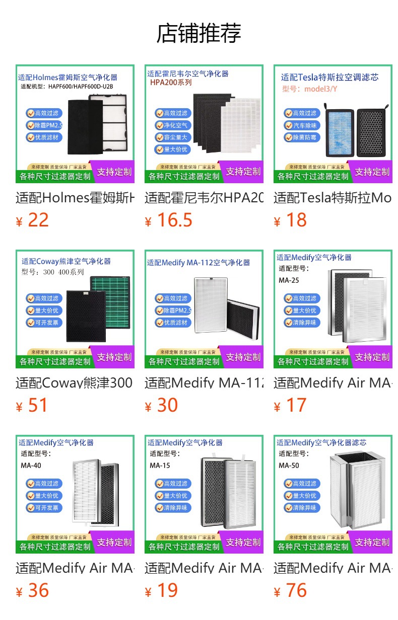 Assorted Air Purifier Filter Replacements (HEPA, Activated Carbon, and Composite Filters) for various Air Purifiers