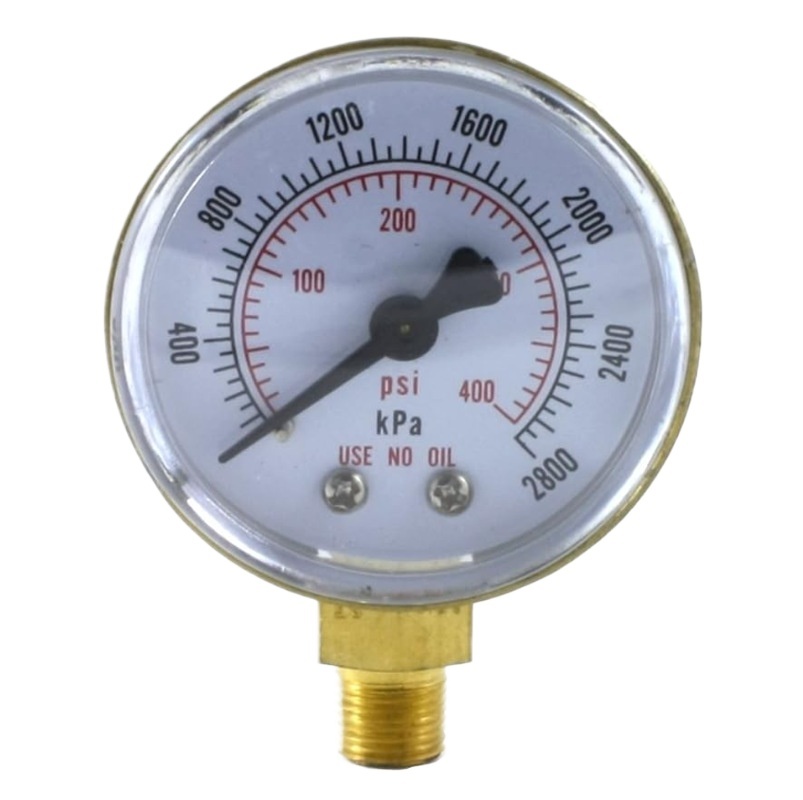 Replacement Pressure Gauge (0-2800 PSI, 0-400 kPa) for Propane, Oxygen, Acetylene, CO2, Argon Gas Regulators