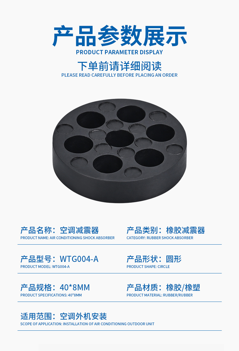 - Wide Compatibility: Designed as a universal rubber shock absorber pad, ideal for various outdoor HVAC units, air conditioning condenser bases, and other vibration-sensitive equipment. Directly replaces original equipment with model WTG004-A.