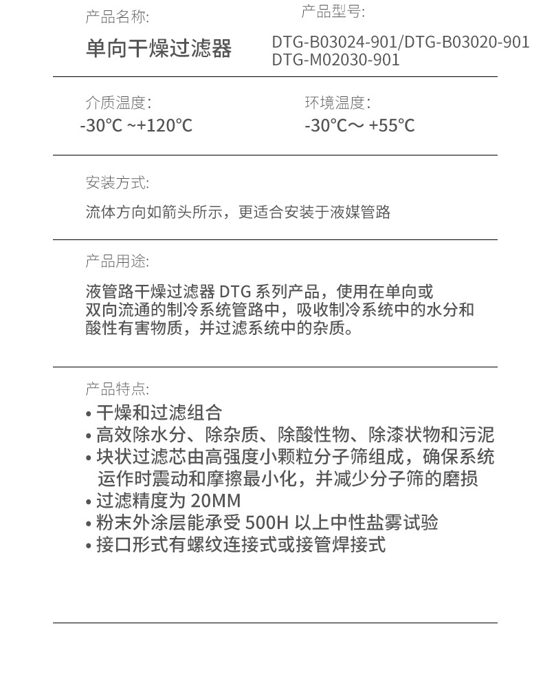- Wide Compatibility: Designed for HVAC systems, compatible with various setups and offers direct replacements for DTG-M02030-901, DTG-B03024-901, and DTG-B03020-901 filter driers.