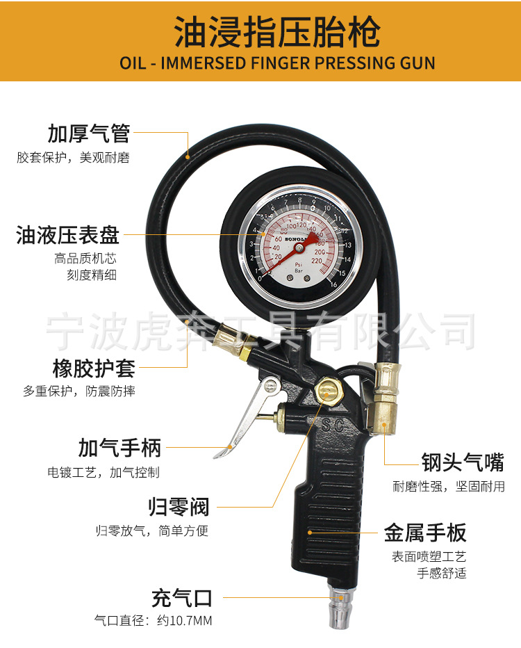 SONGLIN High-Precision Car Tire Pressure Gauge (0-16 bar/0-230 psi) with Air Inflator Gun for Automotive Tire Maintenance and Monitoring