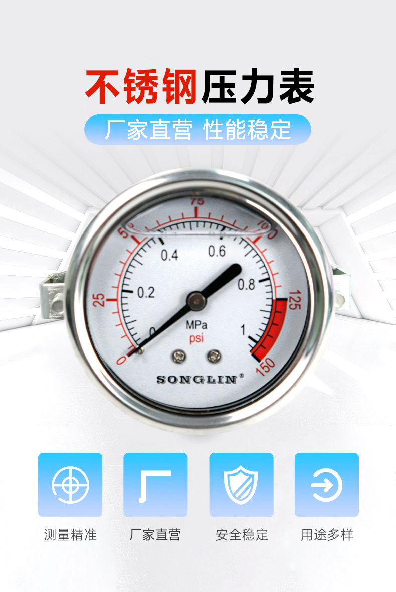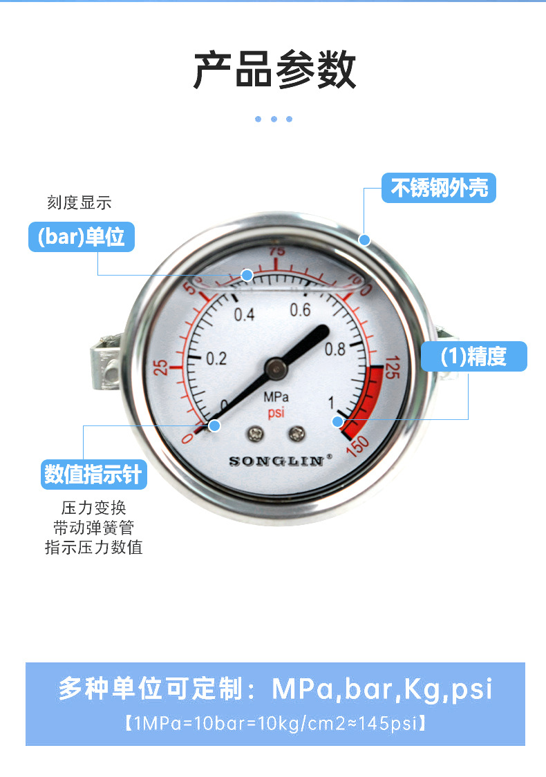 SONGLIN Stainless Steel Pressure Gauge (0-1 MPa/0-150 psi, 63mm/2.5in) for Automotive Industrial HVAC Systems