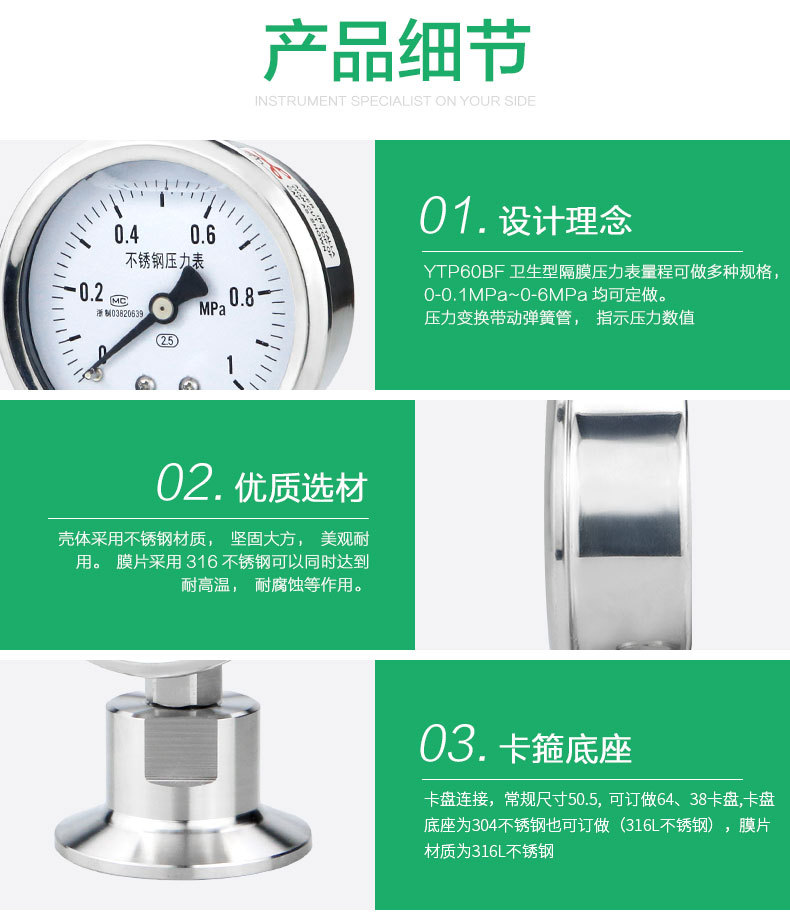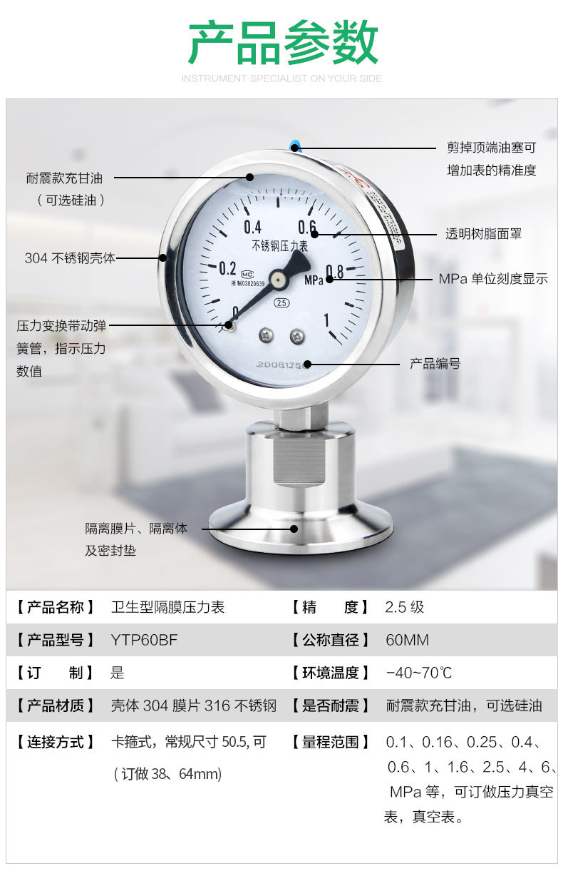 - Wide Compatibility: Designed for various food and pharmaceutical applications, this sanitary diaphragm pressure gauge is compatible with standard clamp connections, ensuring versatile use.