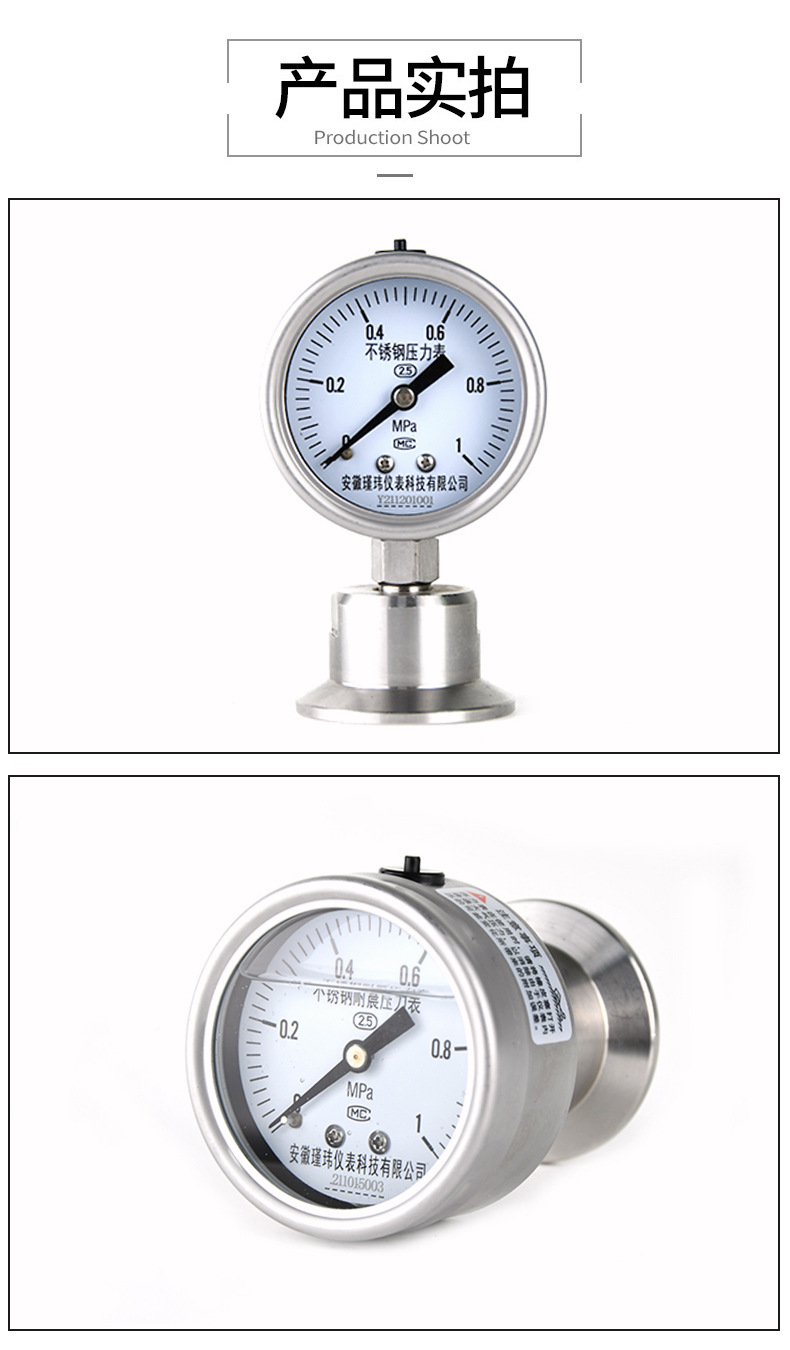 Sanitary Diaphragm Pressure Gauge (0-2.5 MPa, Stainless Steel) for Water/Oil/Gas/Liquid Measurement, Clamp Connection, Accurate & Easy to Install