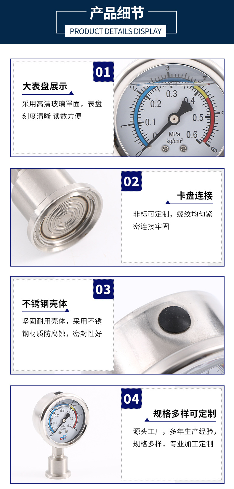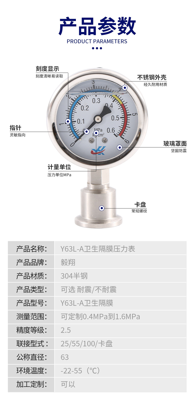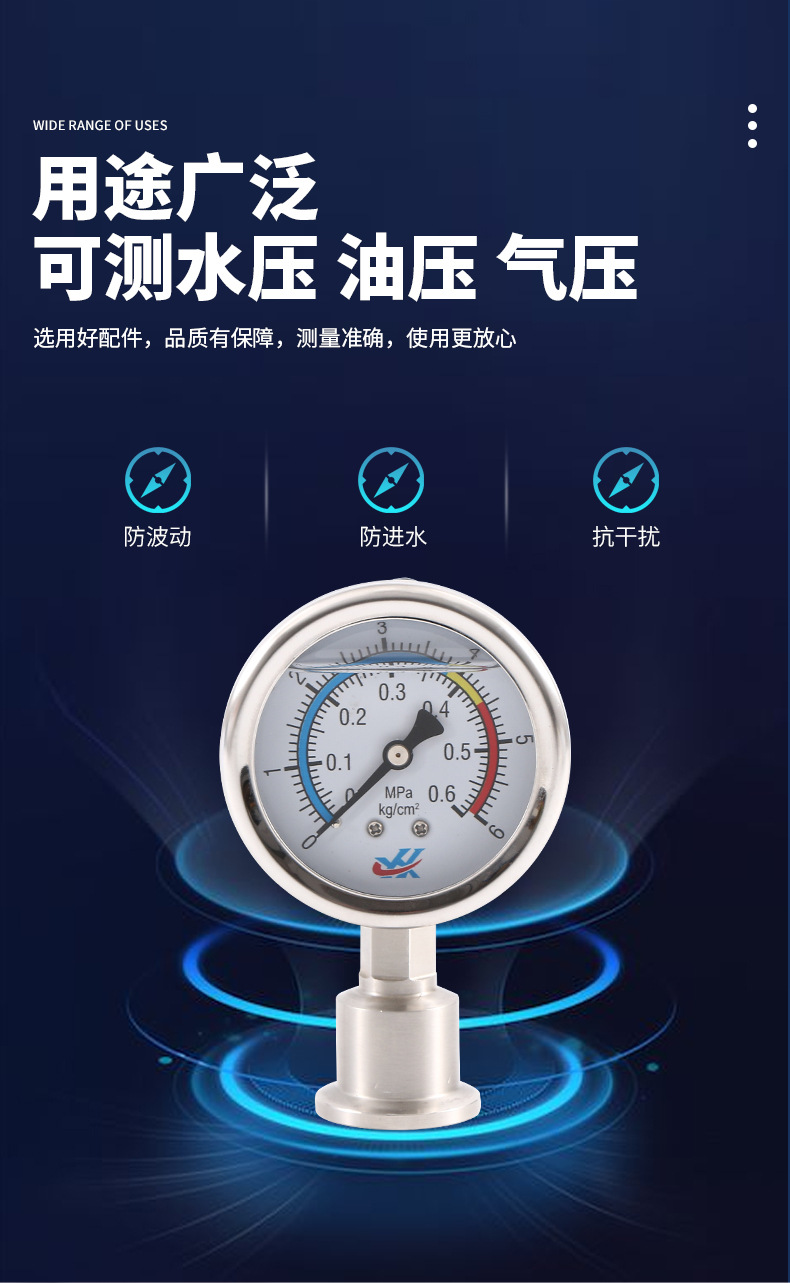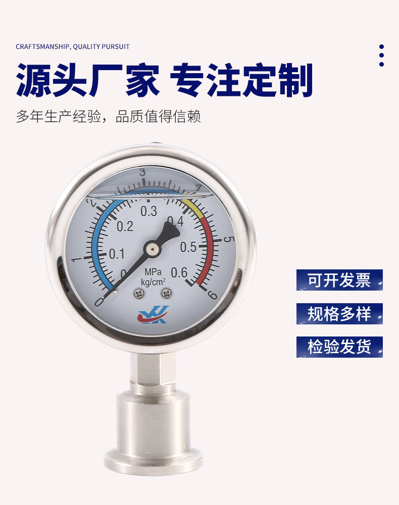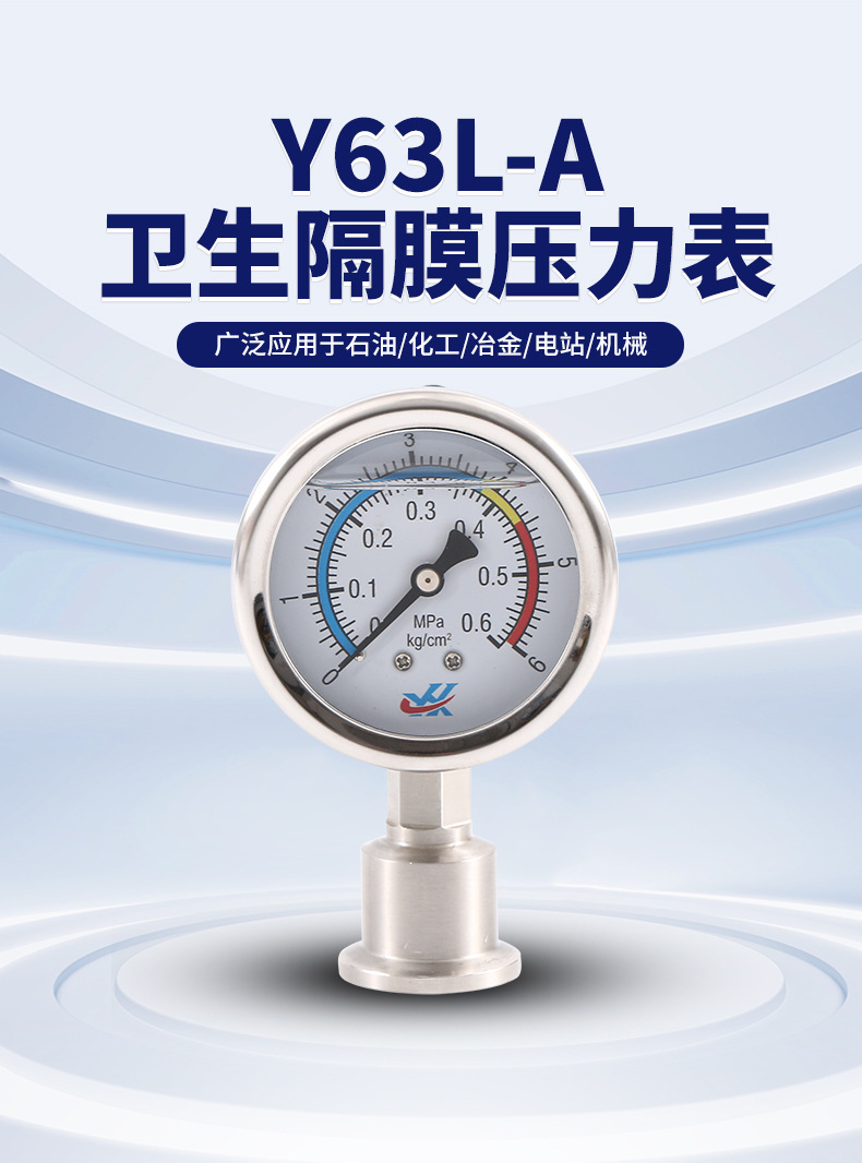 - Wide Compatibility: Y63L-A sanitary diaphragm pressure gauge, suitable for various HVAC systems requiring precise pressure measurement up to 0.6 MPa.