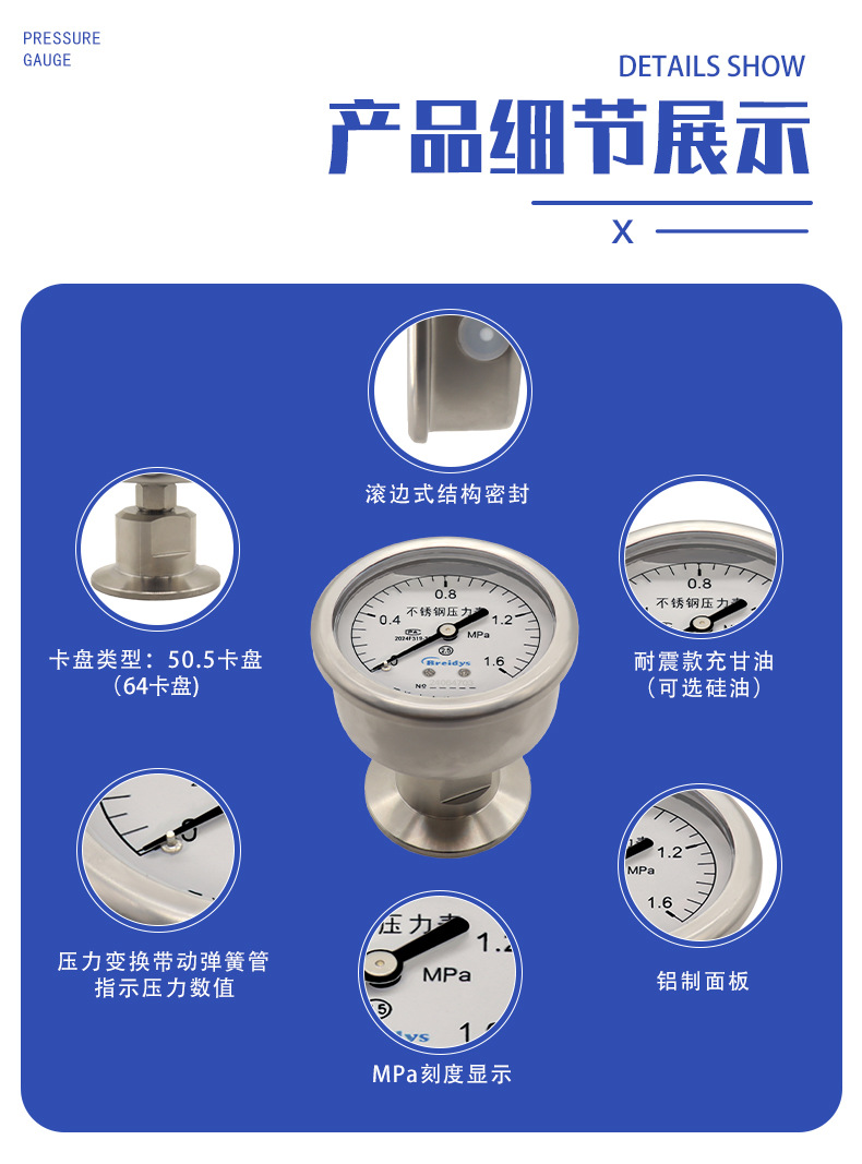 - Quality & Durability: Constructed from high-grade stainless steel with a robust clamp connection (50.5mm diaphragm), offering excellent corrosion resistance and longevity.