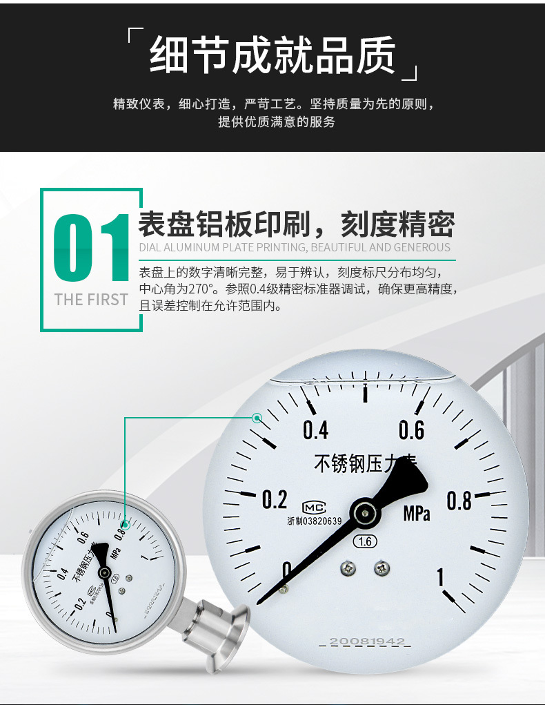 - Key Specs & Performance: Features a 100mm nominal diameter, 1.6 accuracy class, and 50.5mm clamp connection, suitable for a wide range of pressure measurements from -0.1 to 6 MPa.