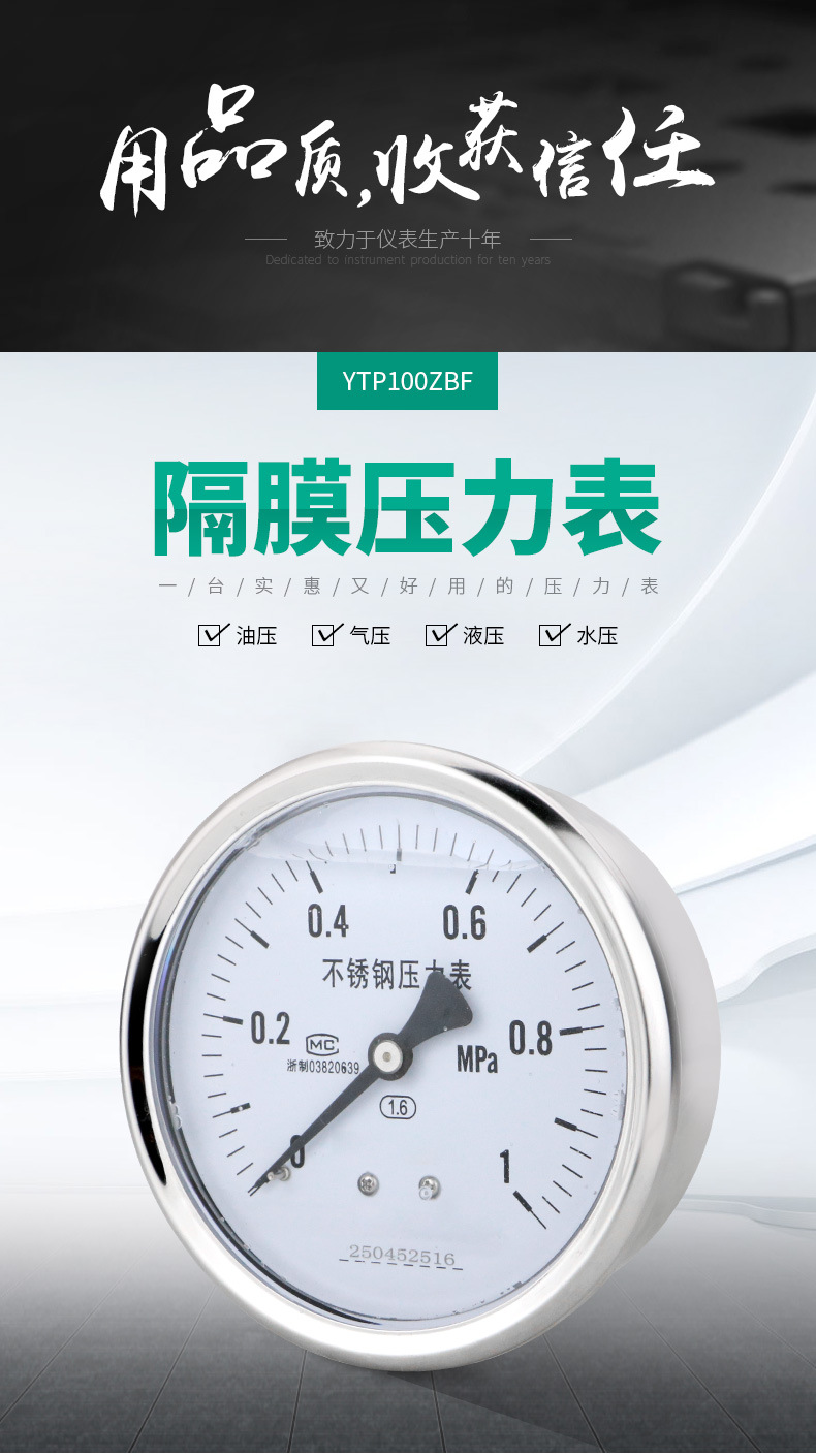 - Comprehensive Packaging & Support: Includes one YTP100ZBF sanitary diaphragm pressure gauge, ready for immediate use. Backed by a one-year warranty for peace of mind.