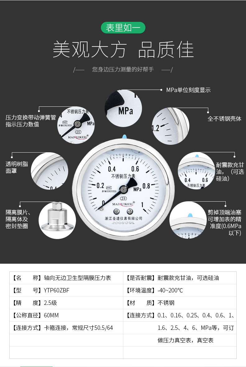 - What You Get: One YTP60ZBF stainless steel diaphragm pressure gauge precisely calibrated for various pressure ranges. Backed by expert support for specific customization needs.