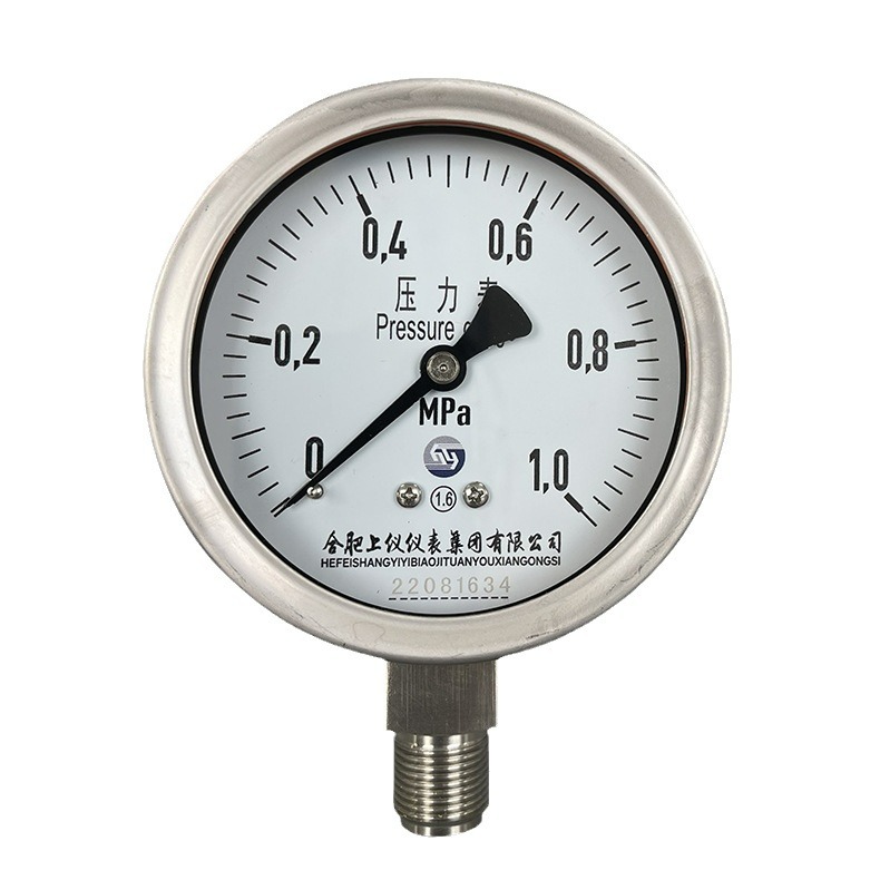 Shangyi Stainless Steel Pressure Gauge Y-100BFZ 1.0MPa 100mm Radial 1.6 Accuracy for Water Air Oil Hydraulic Systems