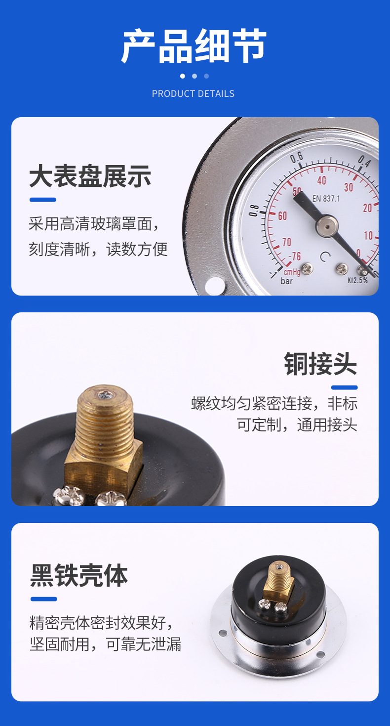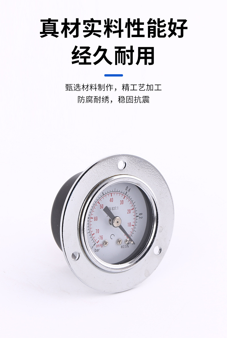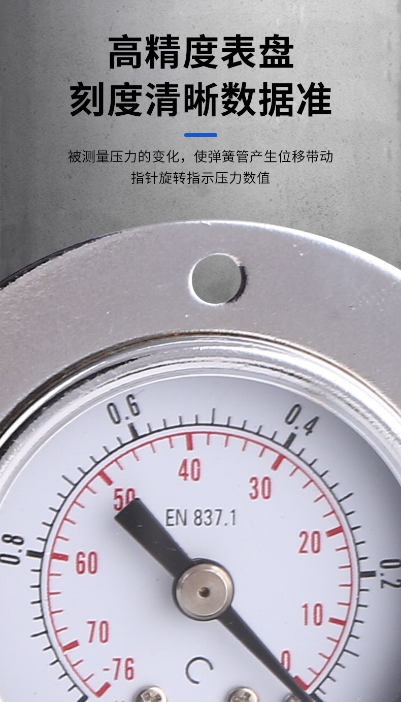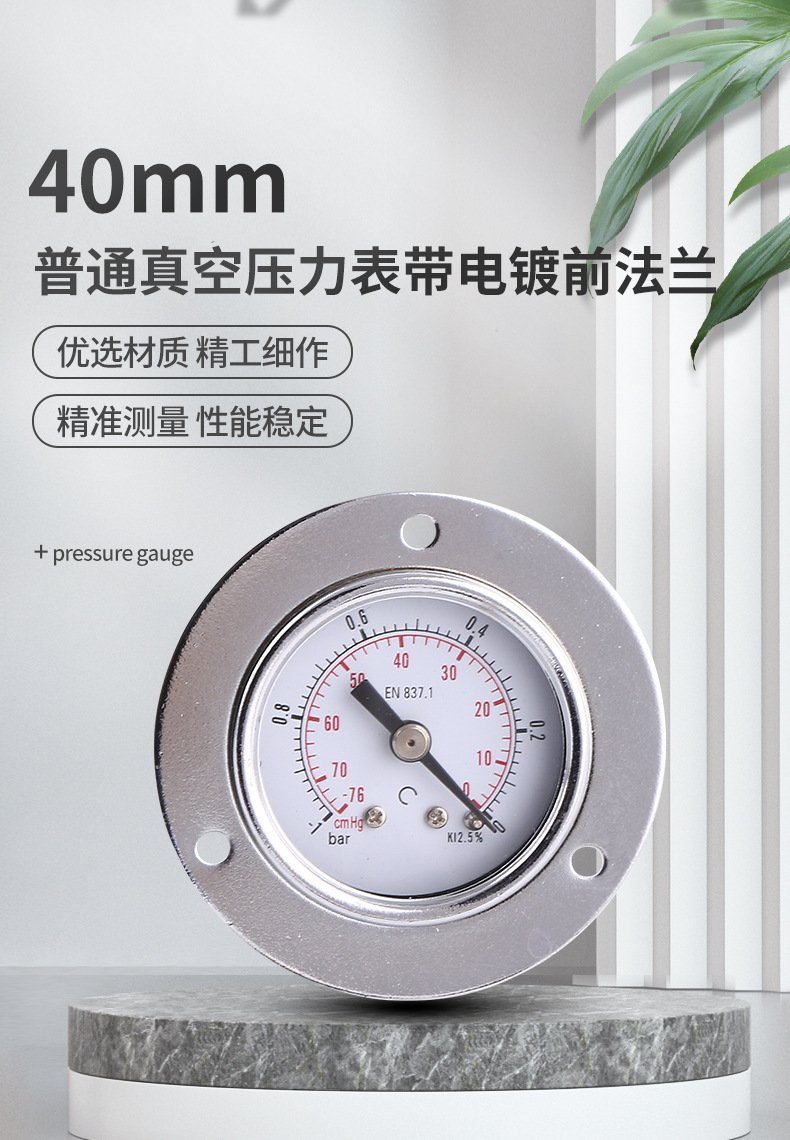 Silver Iron Case Copper Joint Pressure Gauge 40mm Ordinary Vacuum Pressure Gauge with Plated Front Flange Axial Pressure Gauge