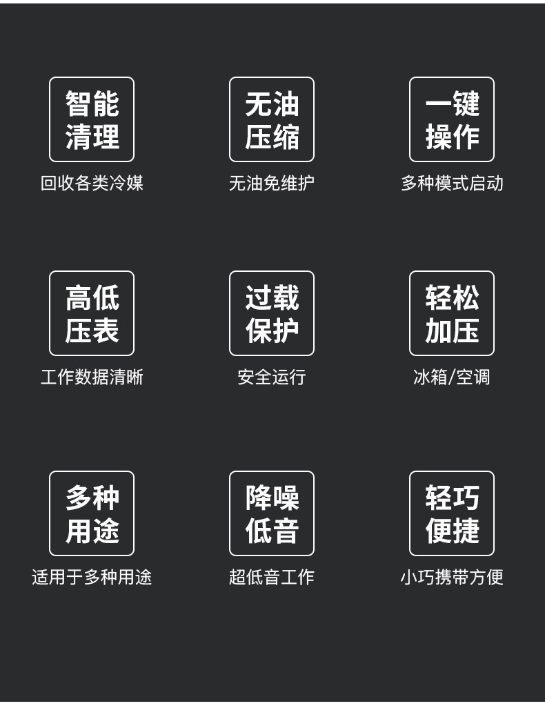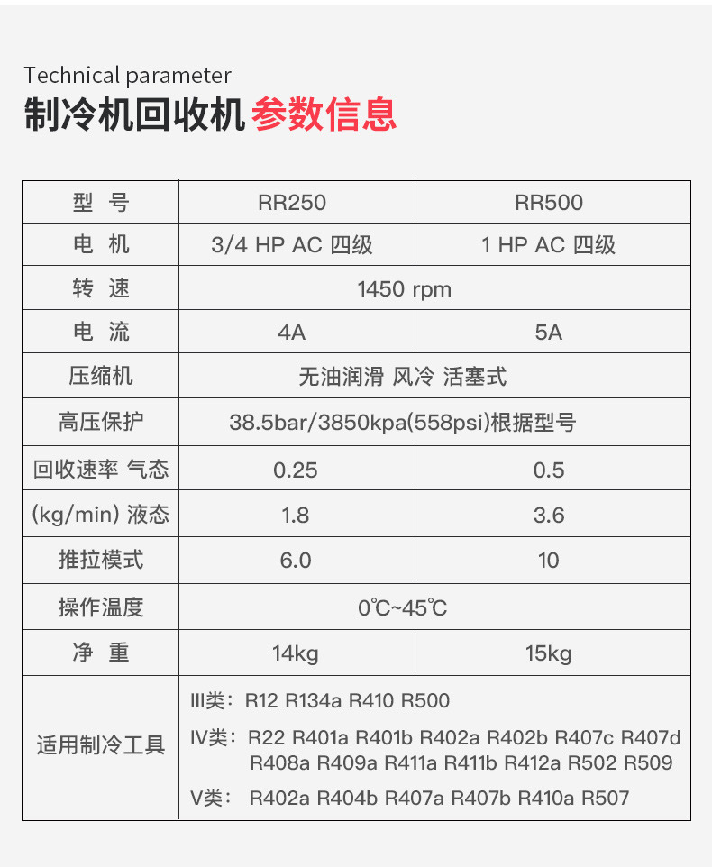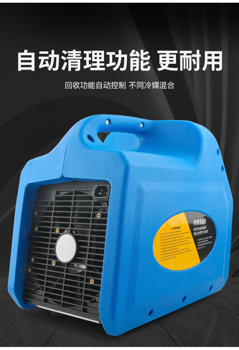 - Key Specs & Performance: Models available include RR250 (12L) and RR500 (24L) with single or dual cylinders, offering efficient refrigerant recovery and easy pressure relief for optimal system maintenance. Features intelligent cleaning, one-key operation, and self-cleaning function for enhanced convenience.