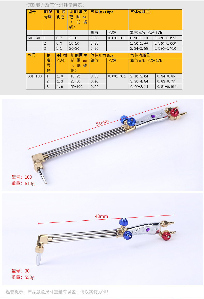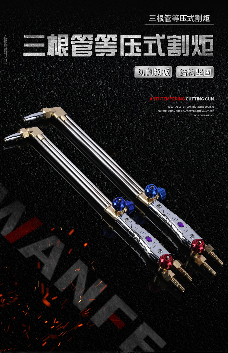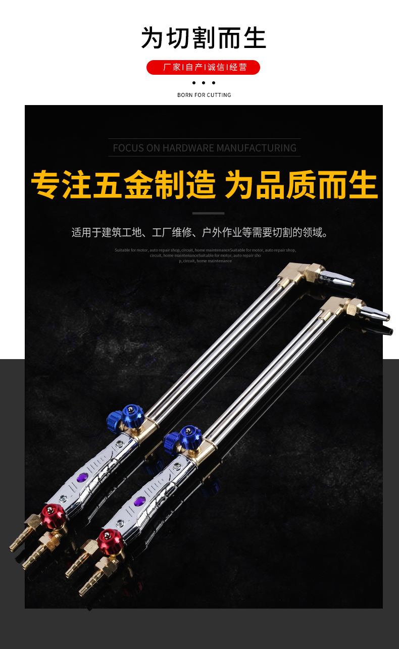 - Efficient Cutting Performance: Three-pipe equal pressure design allows for strong working pressure and precise cutting of plates up to 400mm thickness, powered by oxygen-acetylene gas.