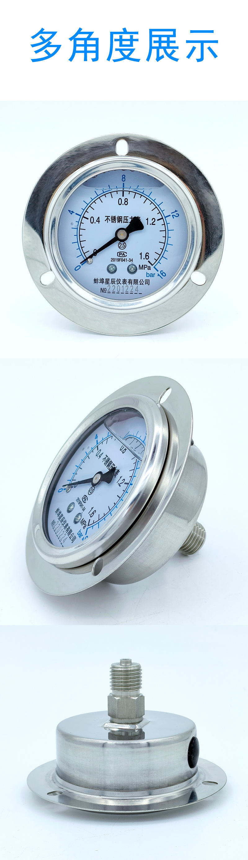 Stainless Steel Axial Pressure Gauge YN-60ZTBF Series (0-60Mpa, M14x1.5 Flange, Shock-Resistant) for HVAC Systems